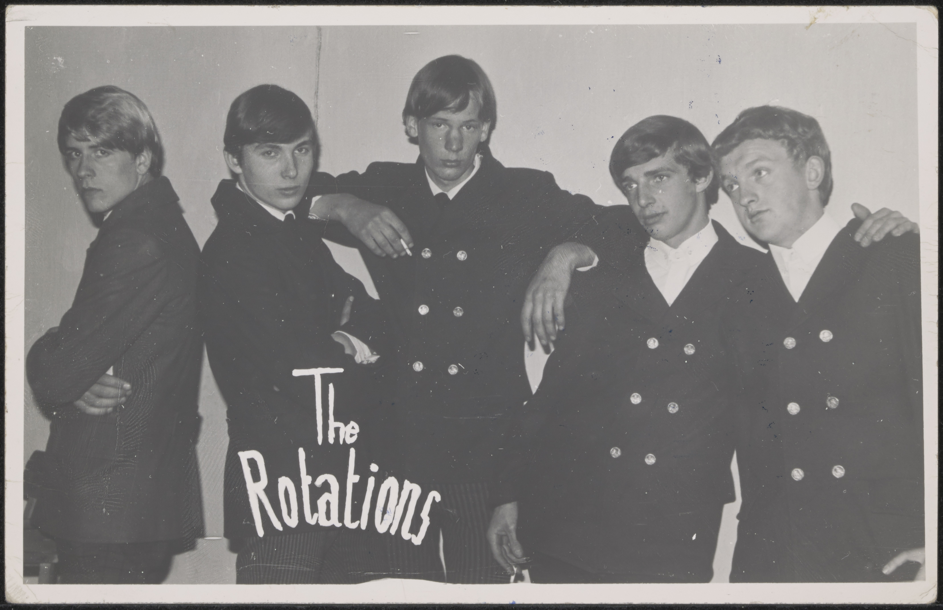 - Band The Rotations uit Alblasserdam. Samenstelling: Wim Verhoef - drums, Paul Matthijssen - sologitaar, Rieks Zuiderbaan - basgitaar, Roelof Kuiper - zang, Harry Struik - rhythm.