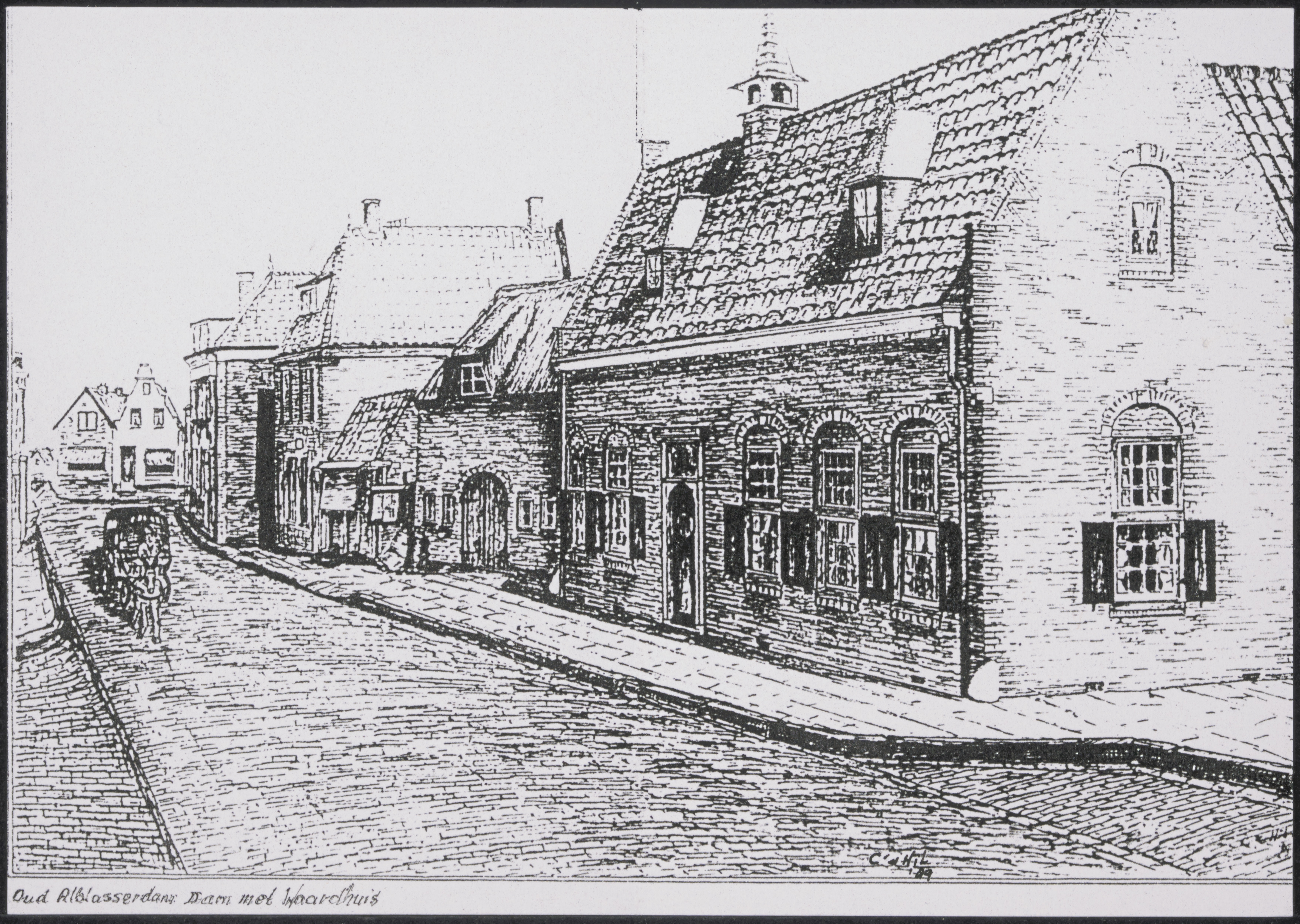Tekening het Waardhuis van de Nederwaard op de Dam in Alblasserdam.