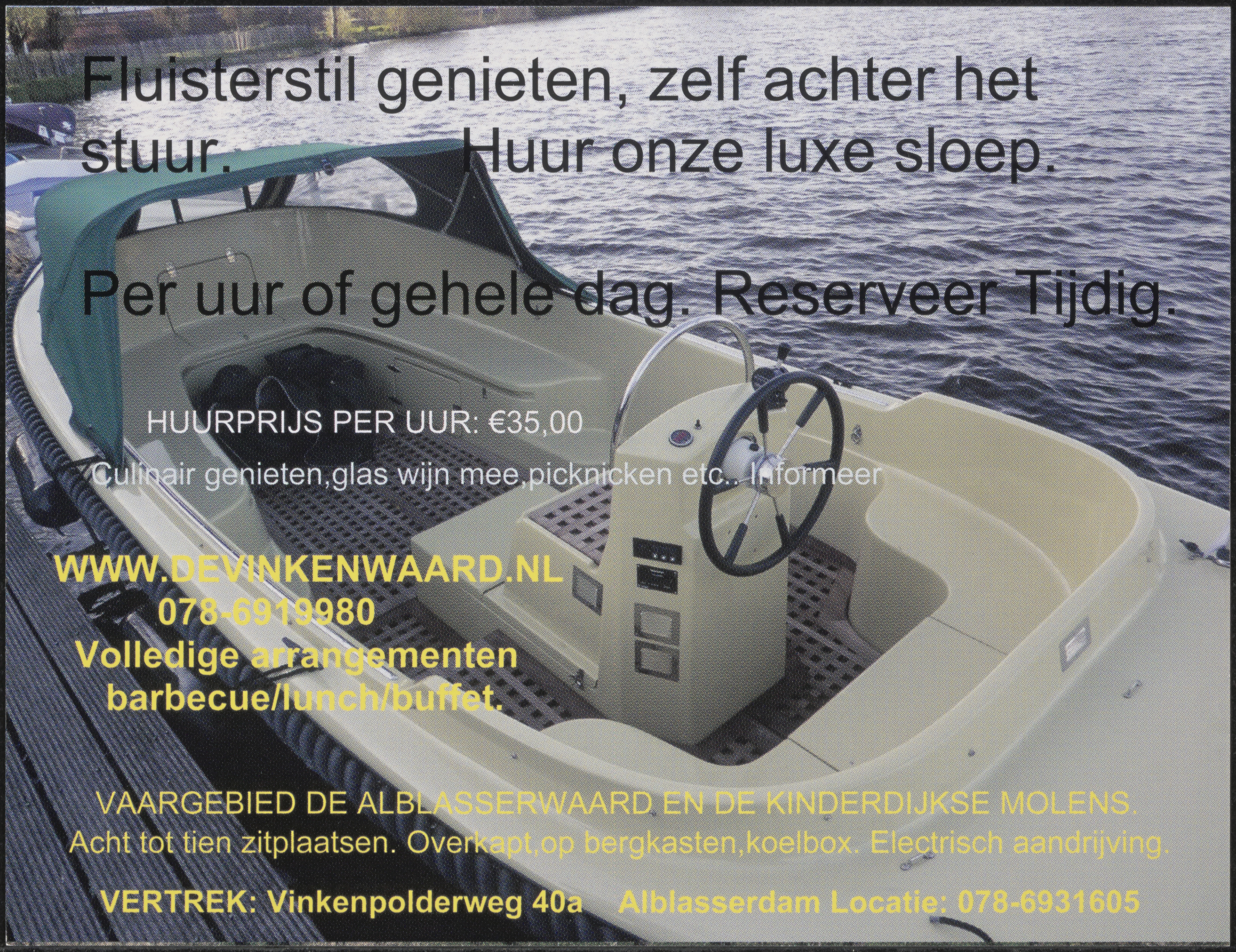 Reclame biljet van recreatiecentrum "de Vinkenwaard "aan de Vinkenpolderweg Alblasserdam.