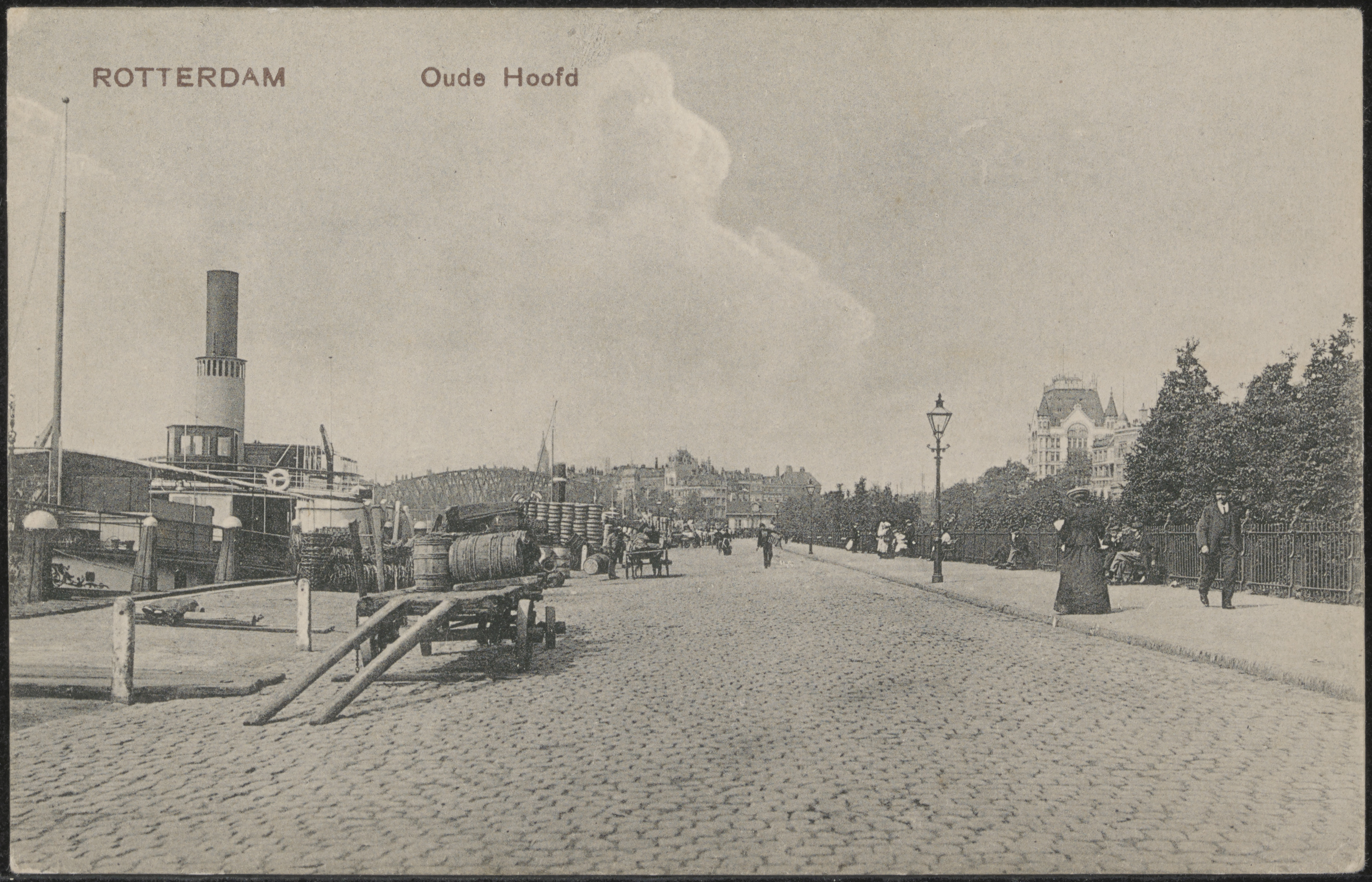 - Stoomraderboot van Reederij op de Lek aan het Oude Hoofd in Rotterdam. Rechts het Witte Huis.