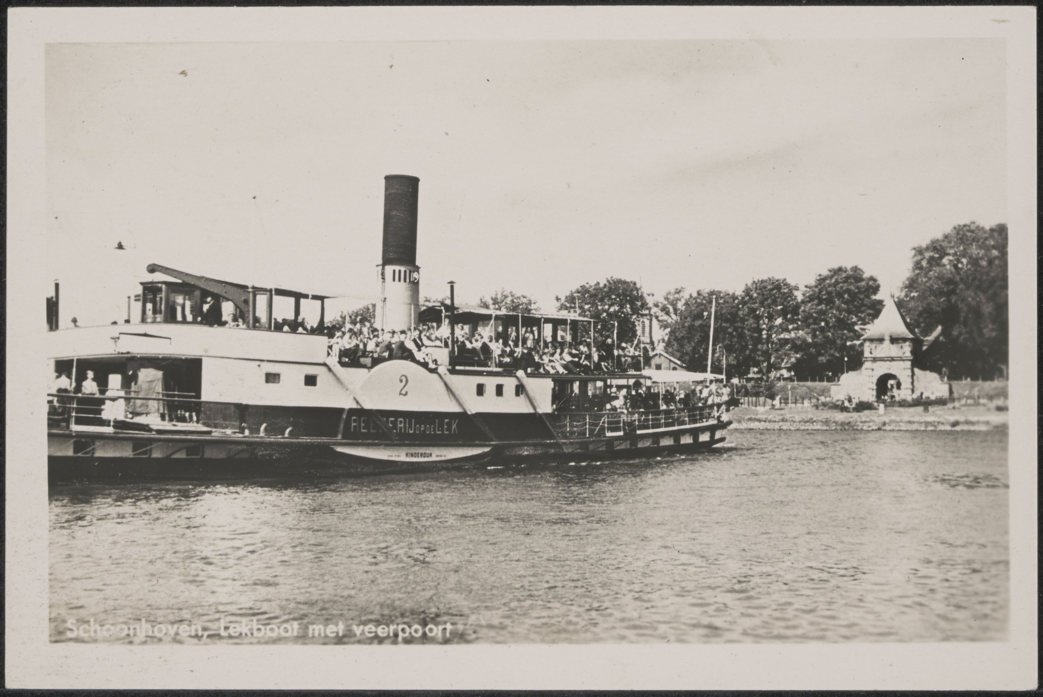 Schip ‘Reederij op de Lek 2’ (zie het nummer op de raderkast). Gebouwd in 1885 en gedoopt ‘Schoonhoven’. In 1910 omgedoopt naar ‘Reederij op de Lek 2’. In 1948 afgevoerd (bron: Wikipedia).
