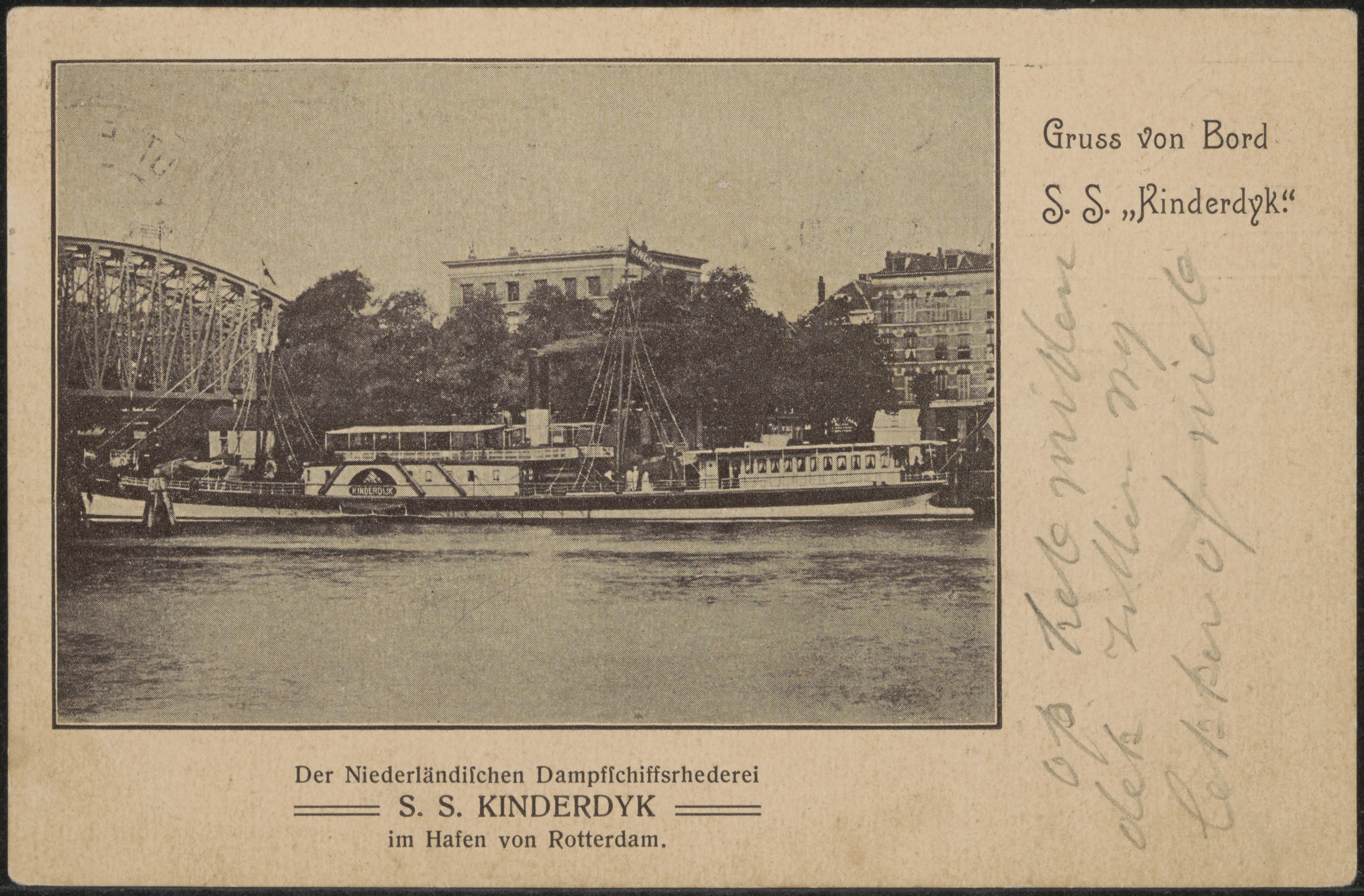 - Stoomboot Kinderdijk bij de spoorbrug over de Nieuwe Maas in Rotterdam.