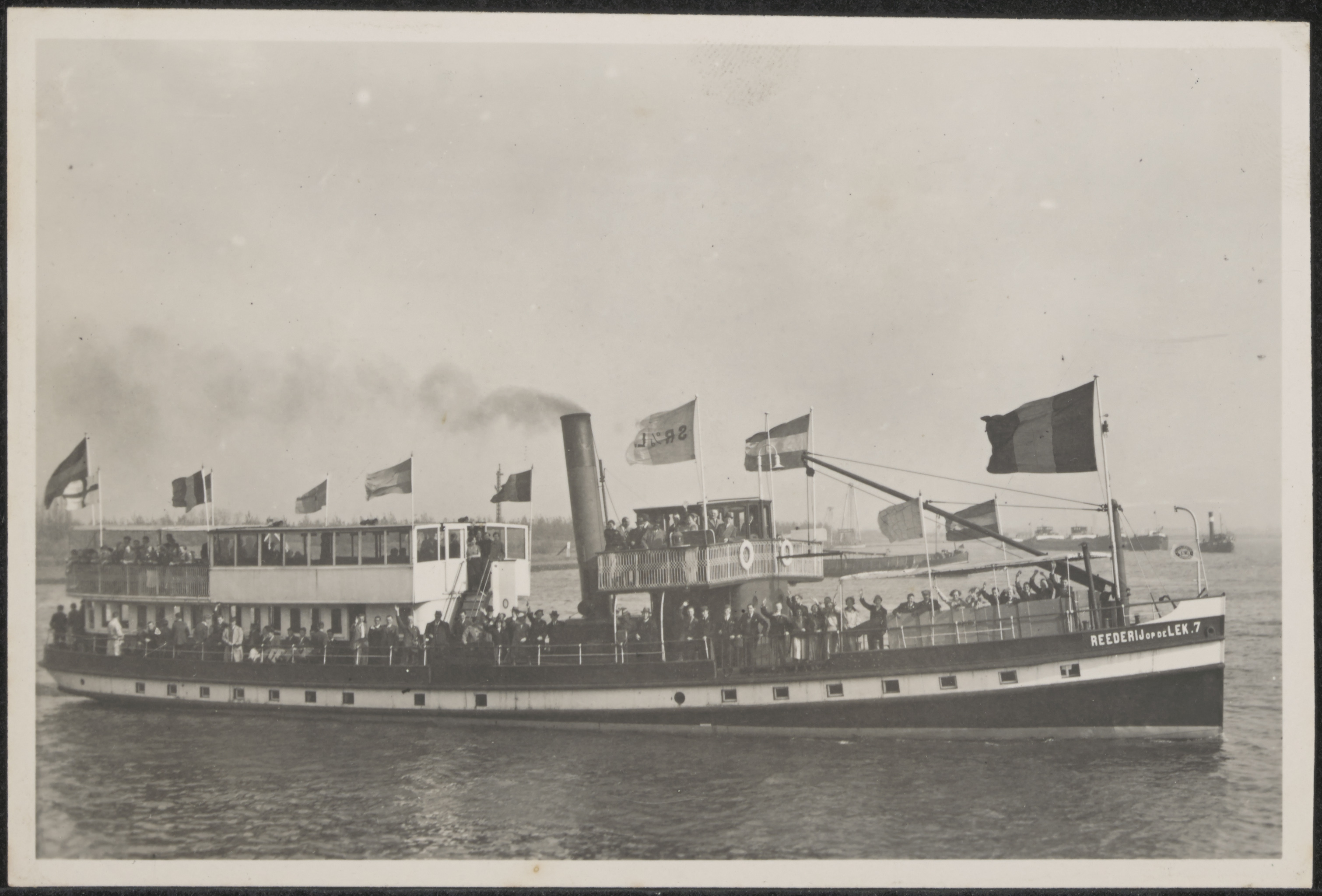 - Schroefsalonboot Reederij op de Lek 7 uit Kinderdijk varend op de Lek.
