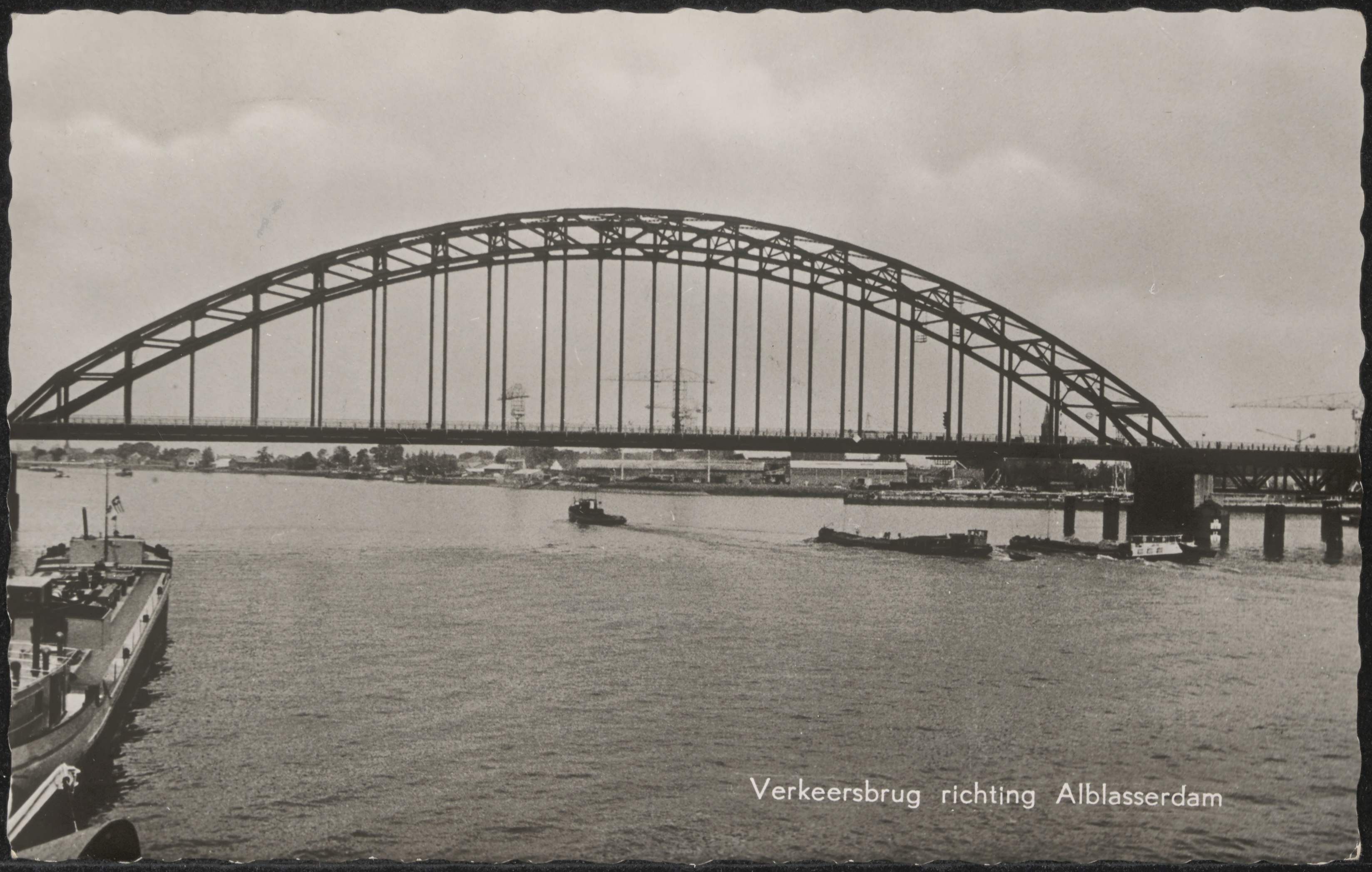 Brug over de Noord gezien vanaf H.I.Ambacht . met op de achtergrond Alblasserdam.