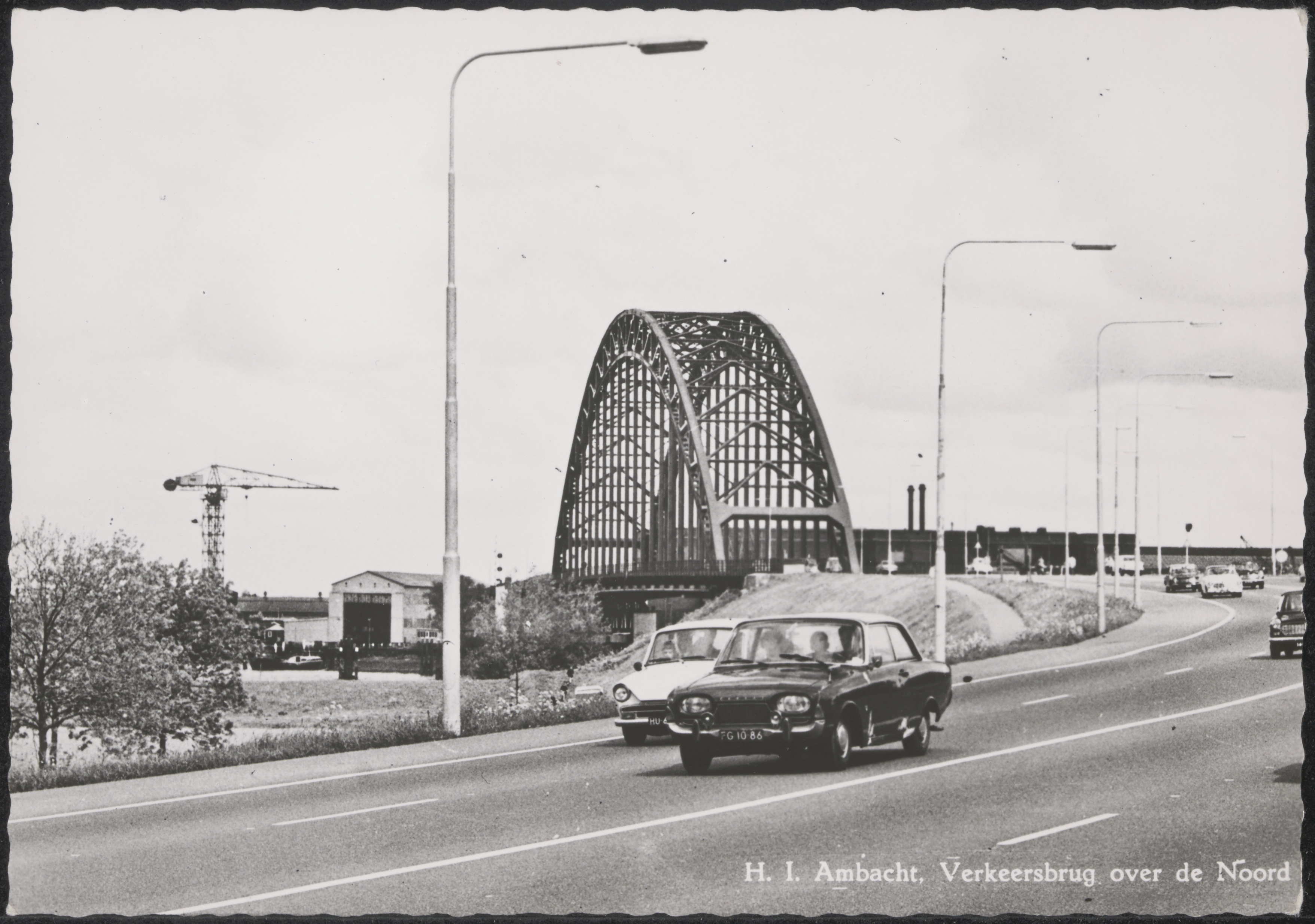 Brug over de Noord in Hendrik-Ido-Ambacht. Links scheepswerf De Noord en rechts de kabelfabriek in Alblasserdam.