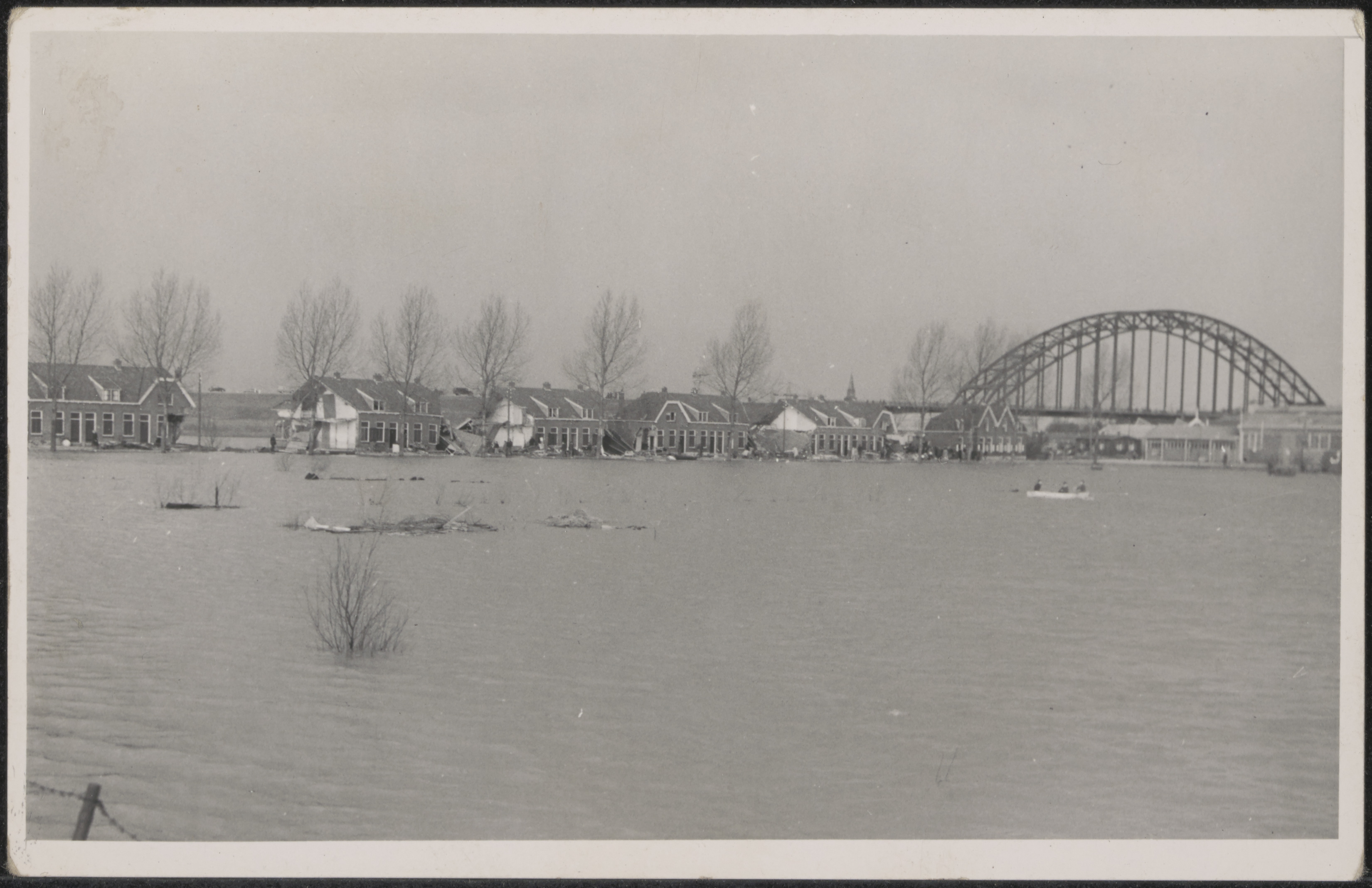 - De Veerweg in Hendrik-Ido-Ambacht tijdens de watersnood. Rechts de Brug over de Noord.
