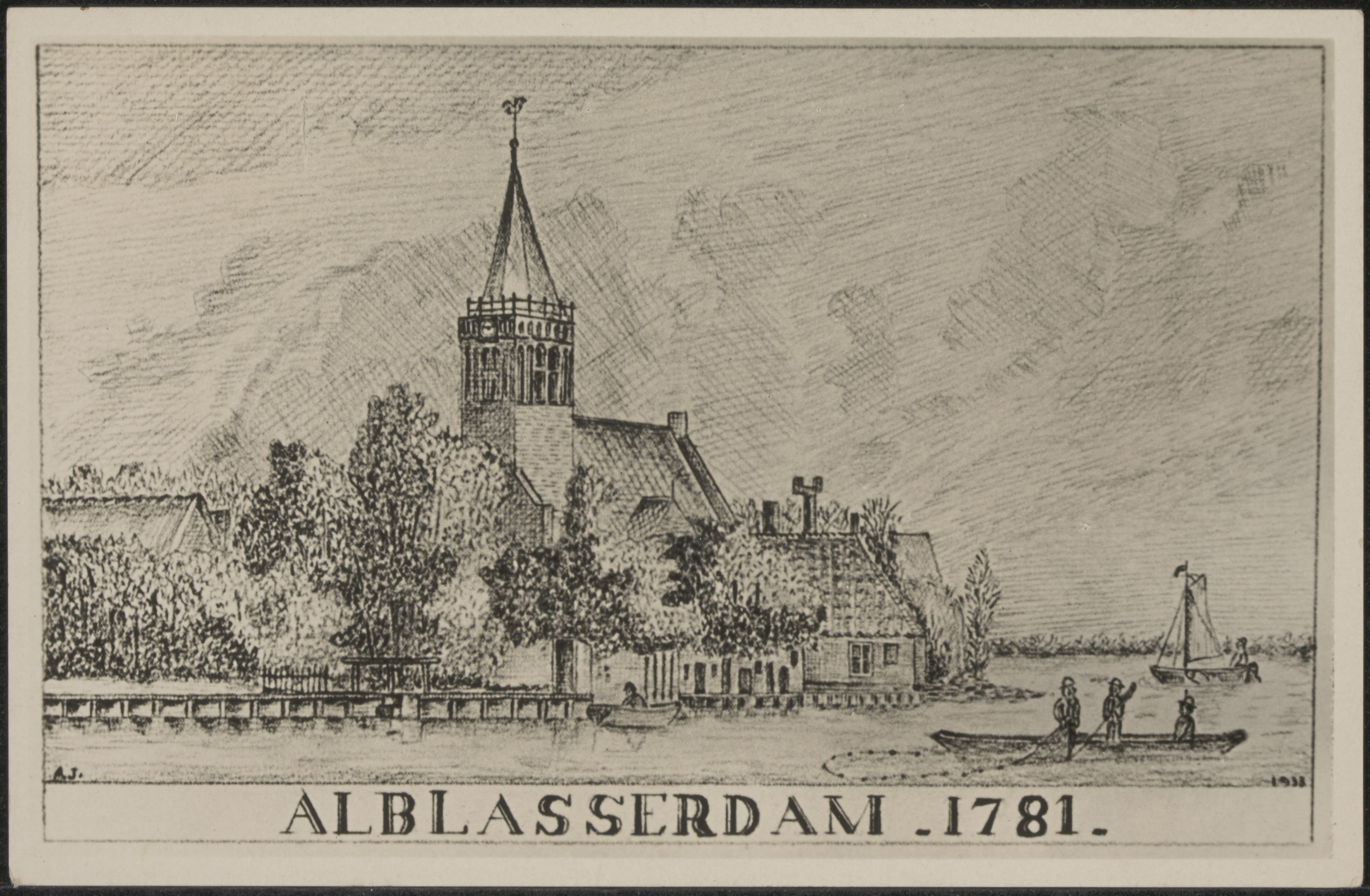Tekening van de Hervormde kerk aan de Kerkstraat in Alblasserdam.