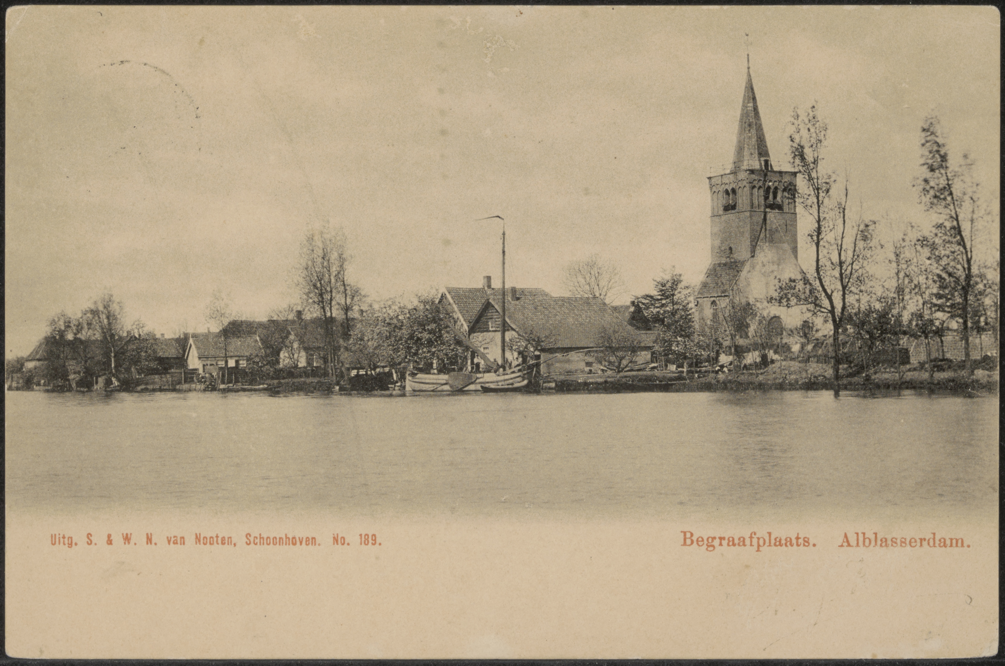 Begraafplaats bij deOude Toren aan de Kerkstraat in Alblasserdam gezien vanaf de Alblas.