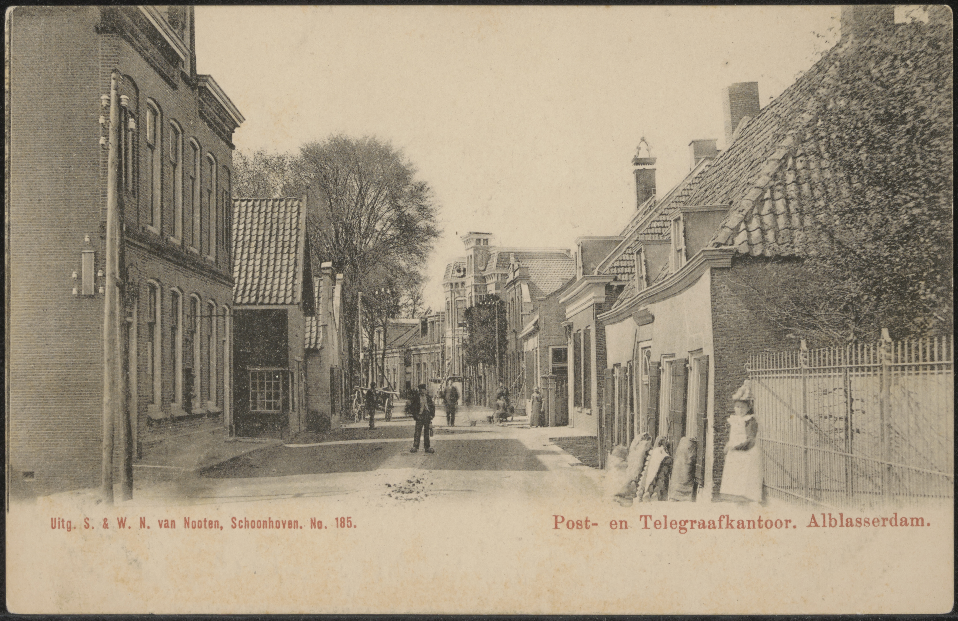 - Het Cortgene in Alblasserdam in de richting van Kinderdijk. Links het postkantoor.