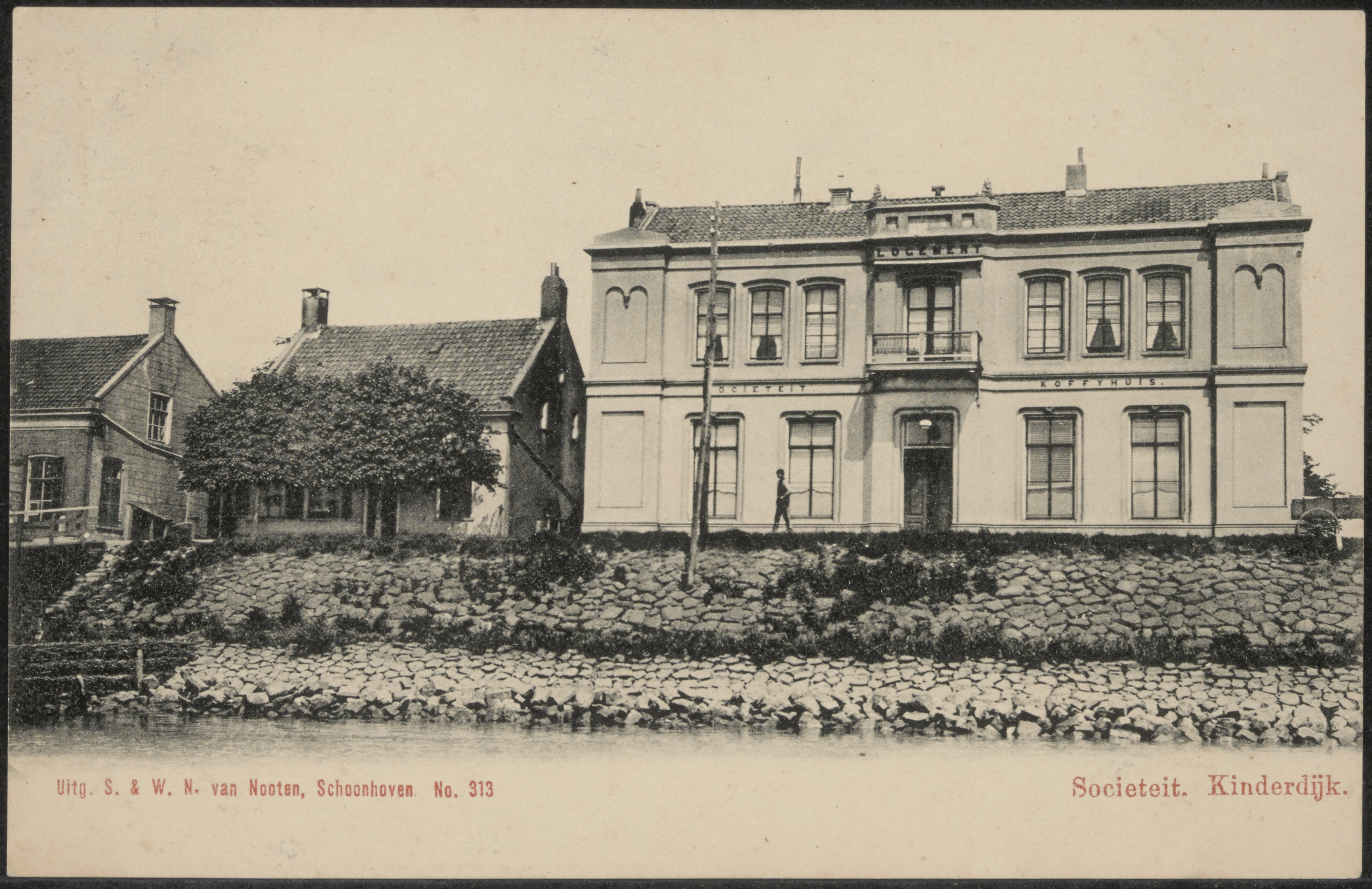 Sociëteit Ons Genoegen aan de West Kinderdijk langs de Noord in Alblasserdam.