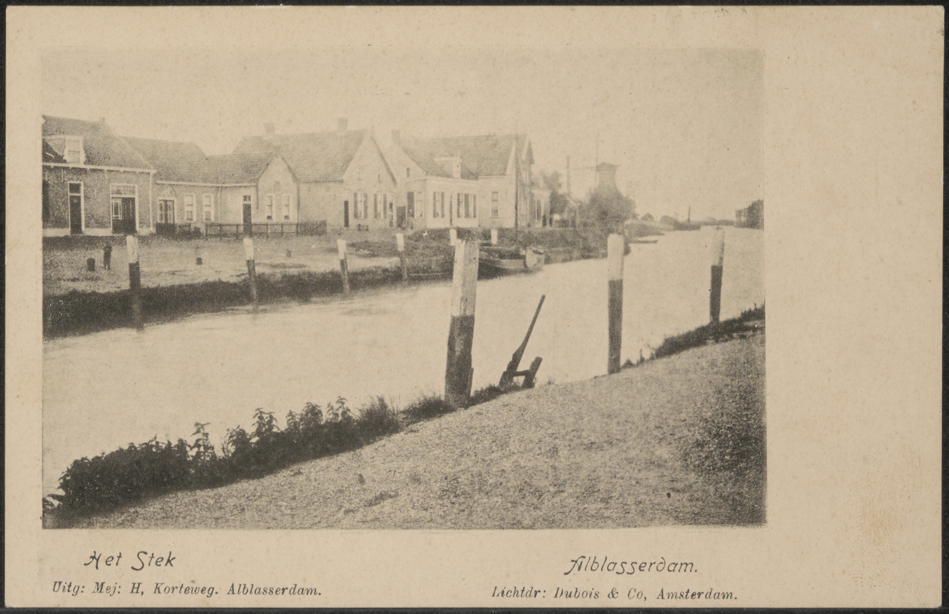 - Links het Zuiderstek langs de Buitenjachthaven in Alblasserdam. Op de achtergrond molen De Hoop.