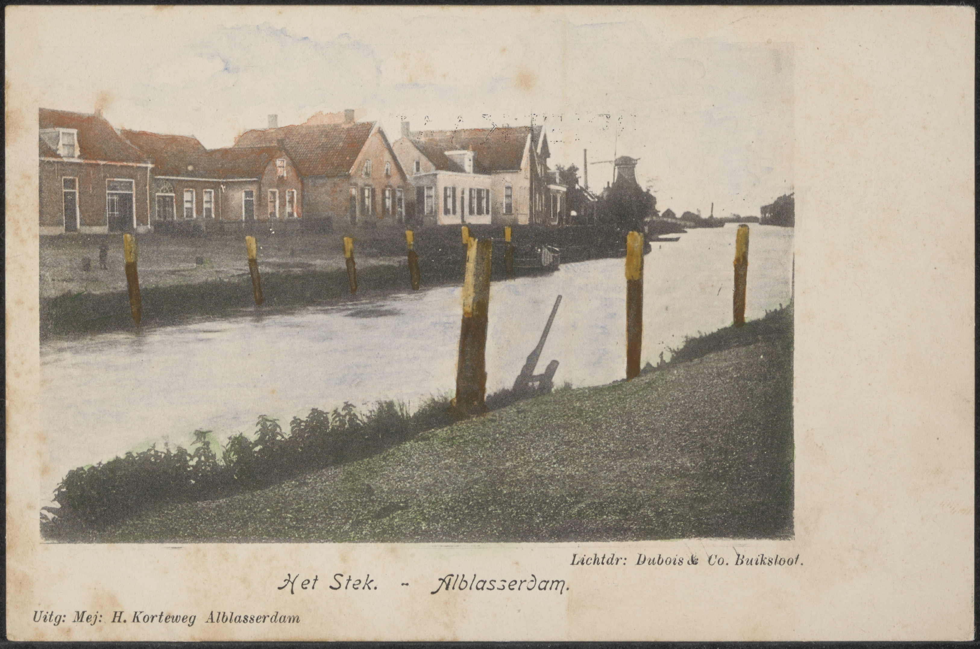 - Links het Zuiderstek langs de Buitenjachthaven in Alblasserdam. Op de achtergrond molen De Hoop.