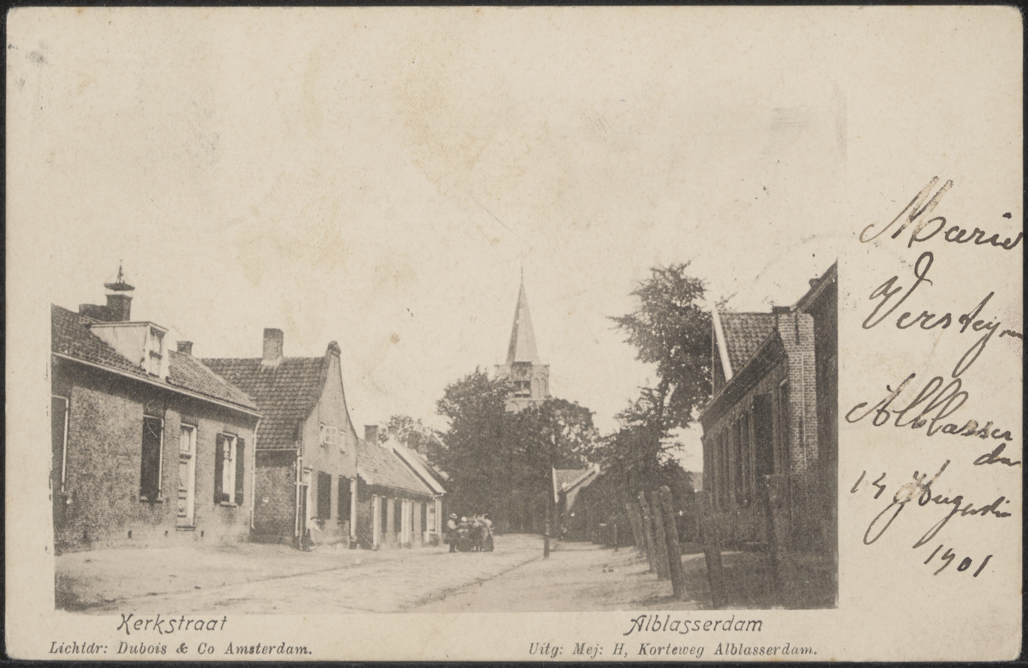 - Kerkstraat richting de Oude Toren in Alblasserdam.
