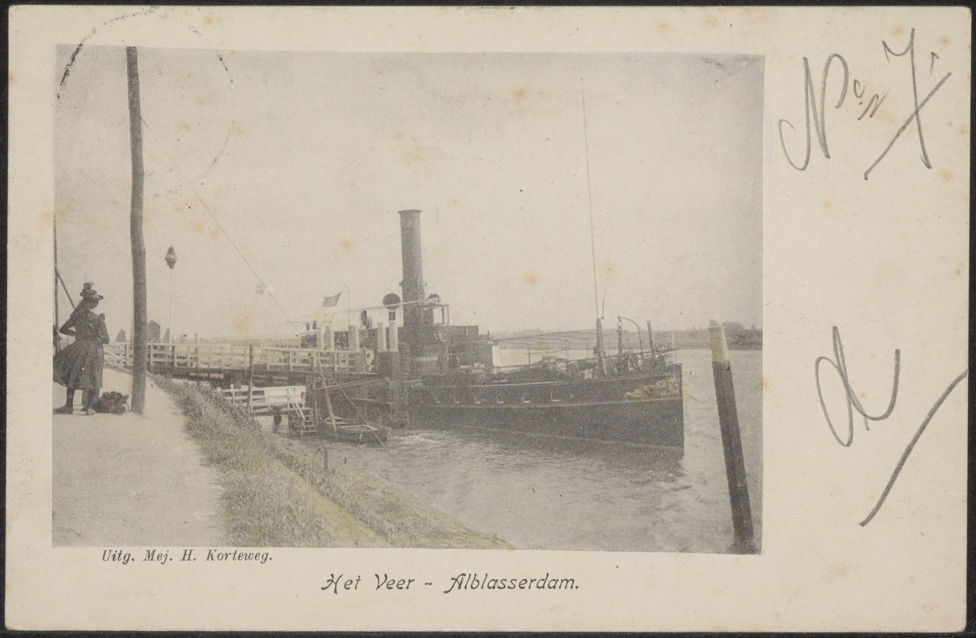 - Veerboot bij de steiger aan de Oost Kinderdijk in Alblasserdam.