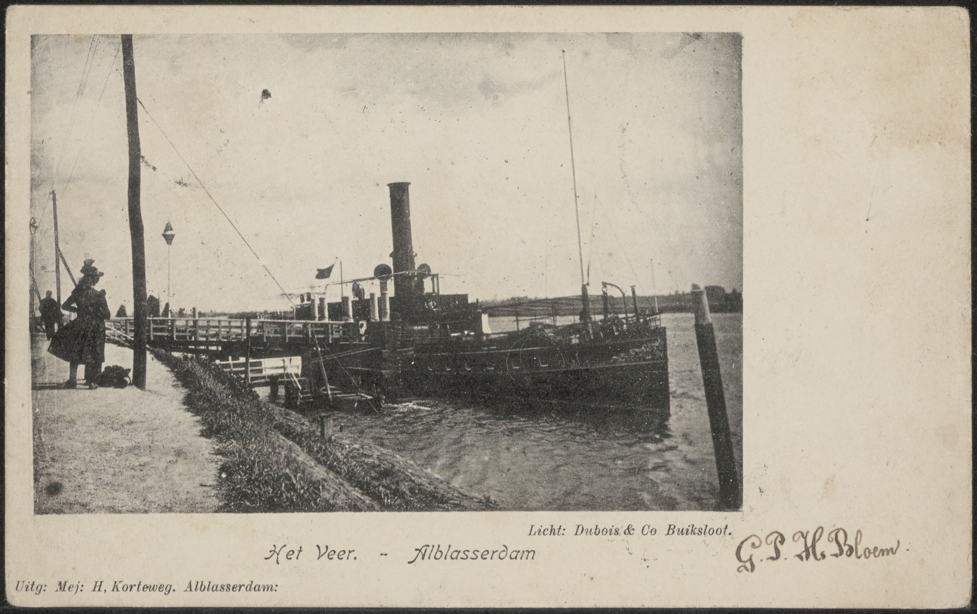 Veerboot bij de steiger aan de Oost Kinderdijk in Alblasserdam.