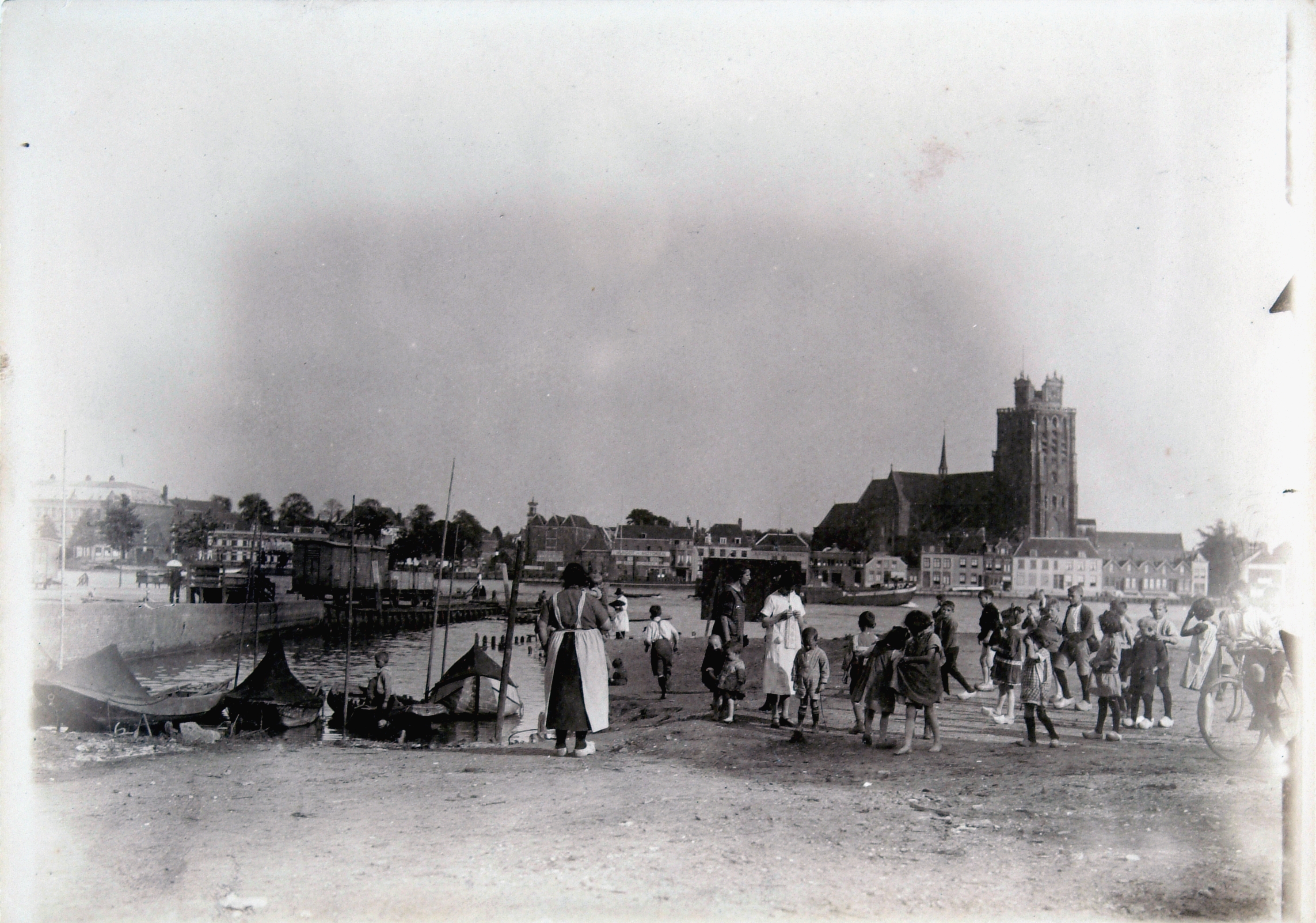 - Spelende kinderen op het Maasplein in Zwijndrecht tegenover de Hooikade