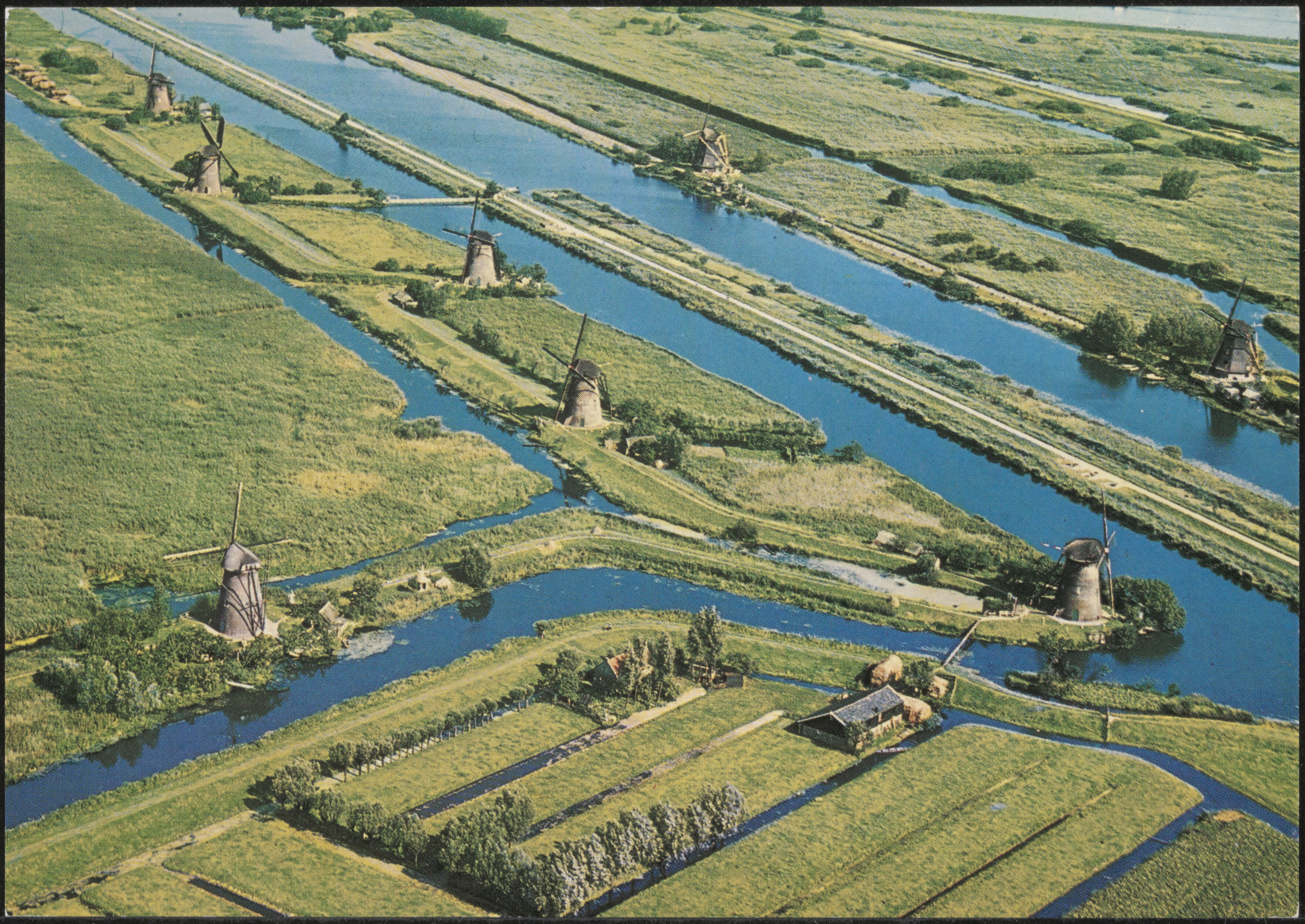 Luchtfoto molens Kinderdijk met links onder Molenkade Nederwaard 9