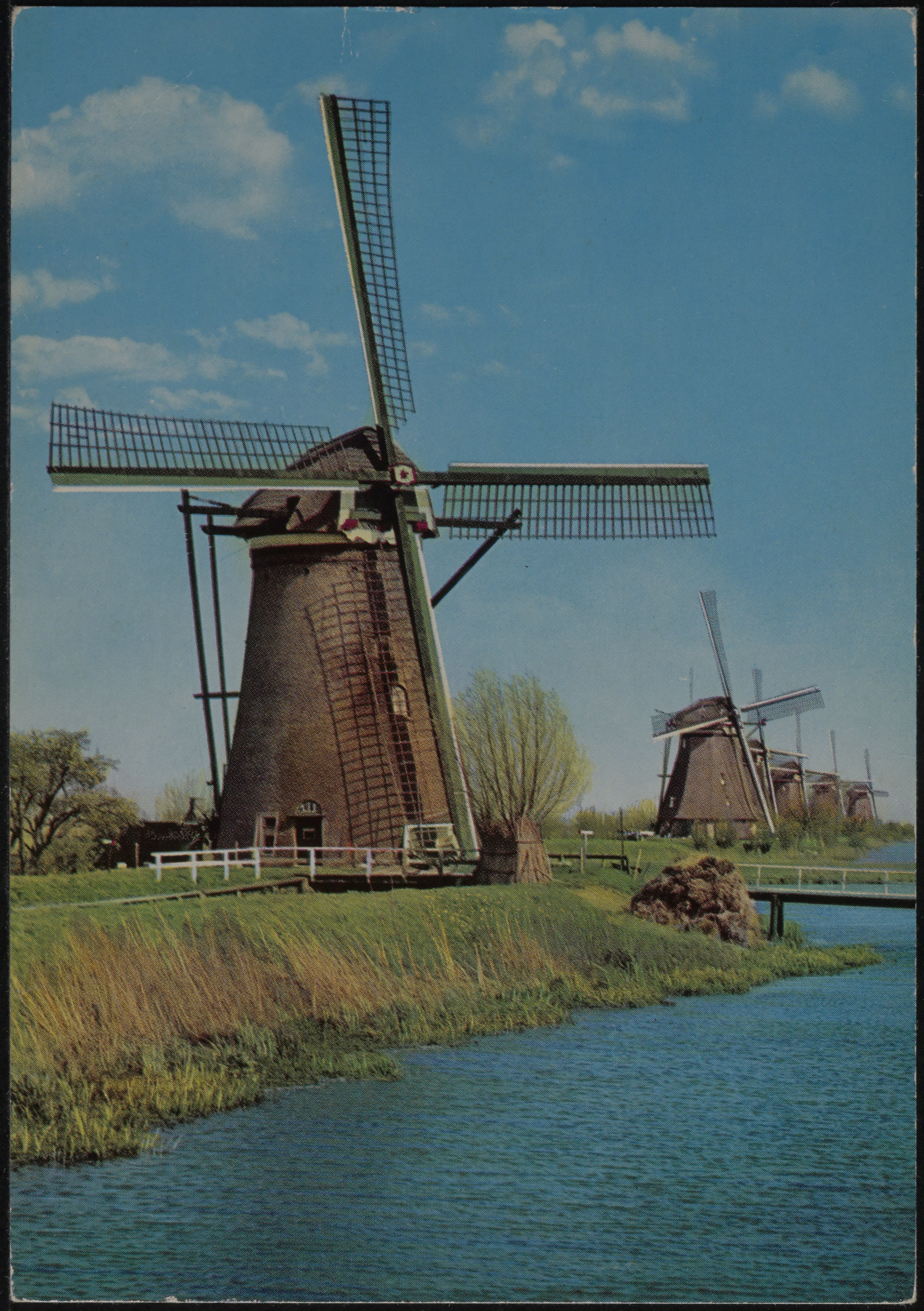 - Molen Nederwaard no. 5 aan de Molenkade Nederwaard, erachter molens aan de Molenkade Overwaard in Kinderdijk.