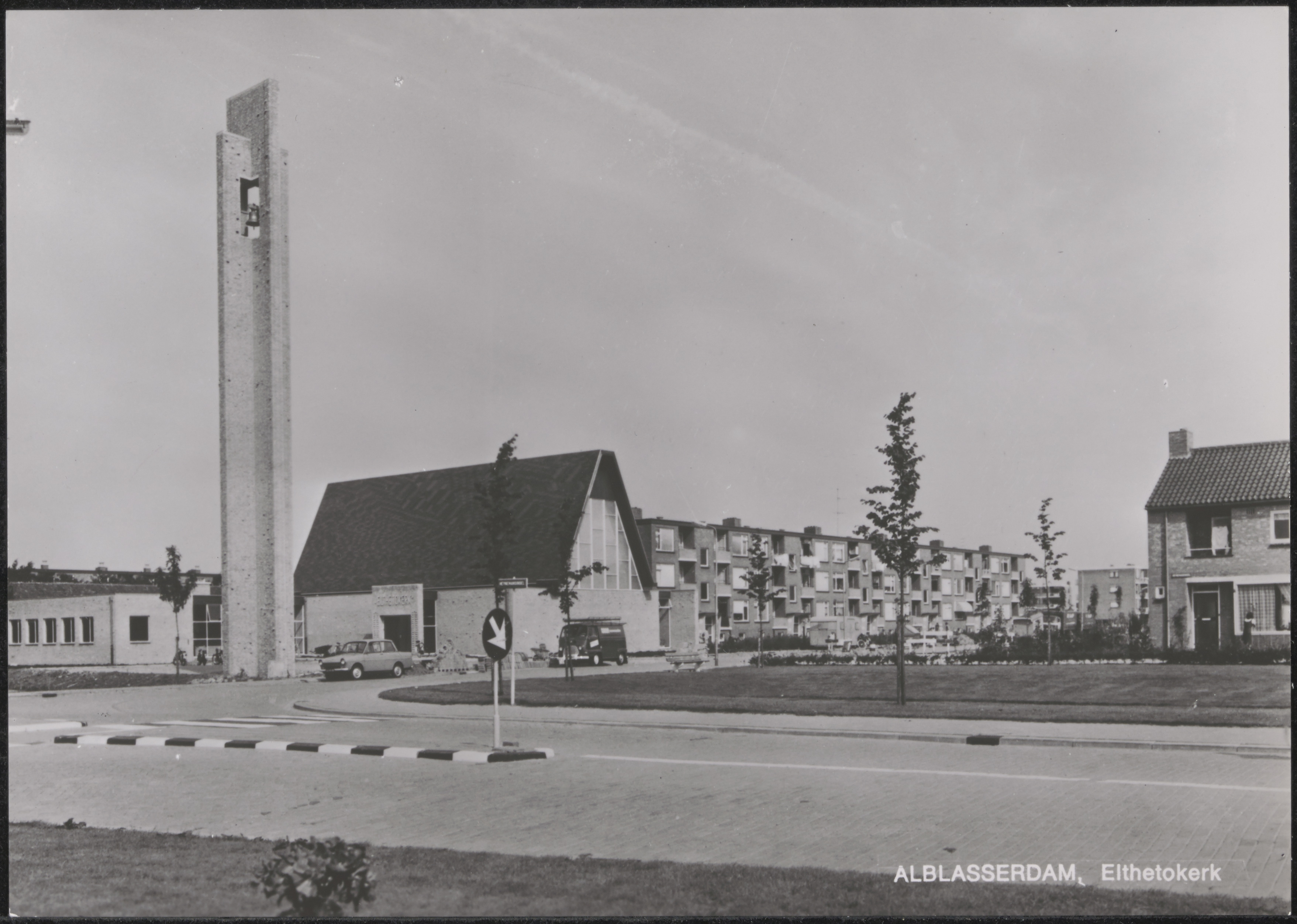 - Elthetokerk aan de Blokweerweg in Alblasserdam, gezien vanaf de Van Eesterensingel.