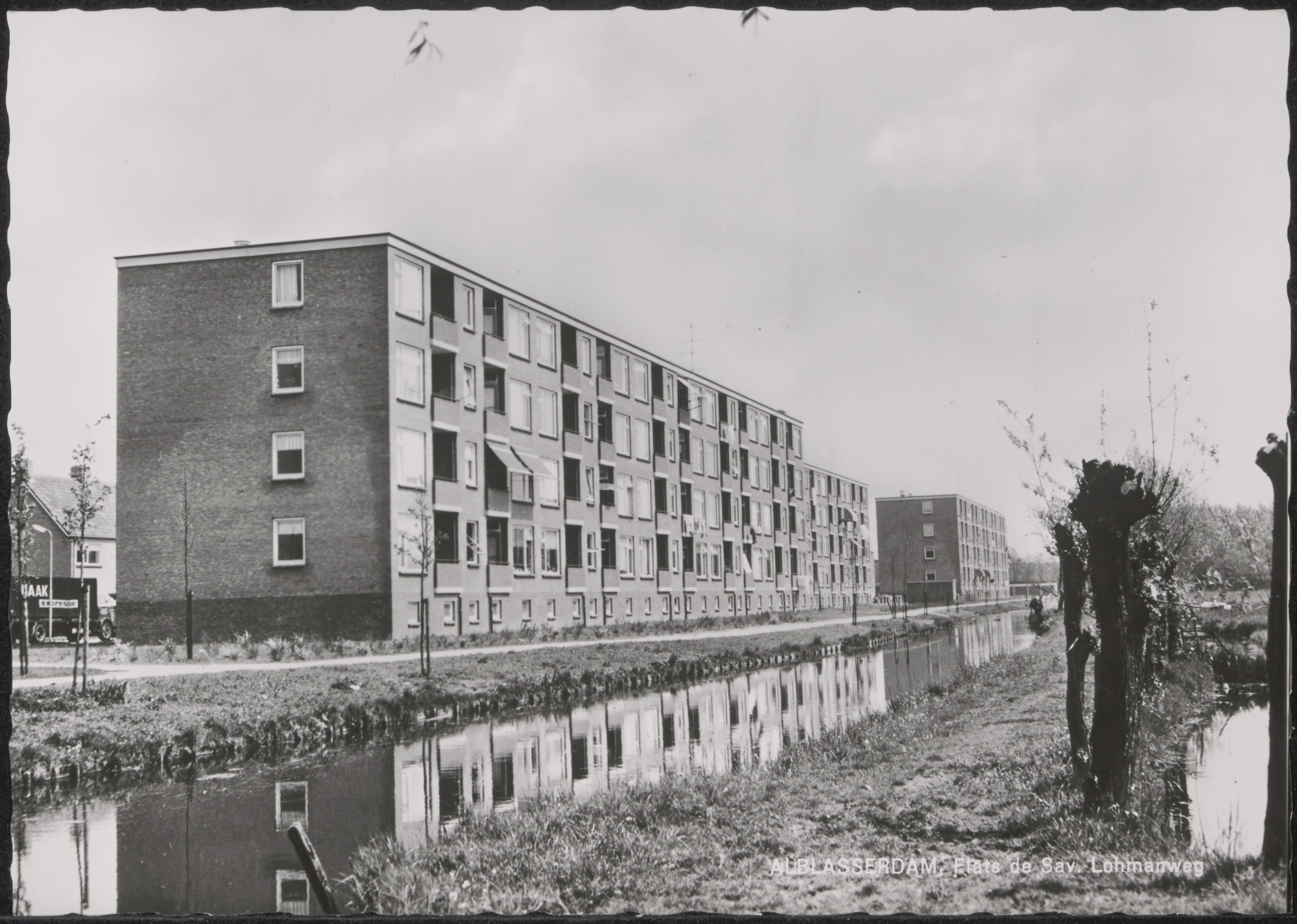 Flats aan de Sav.Lohmanweg gezien vanaf de van Hogendorpweg in Alblasserdam.