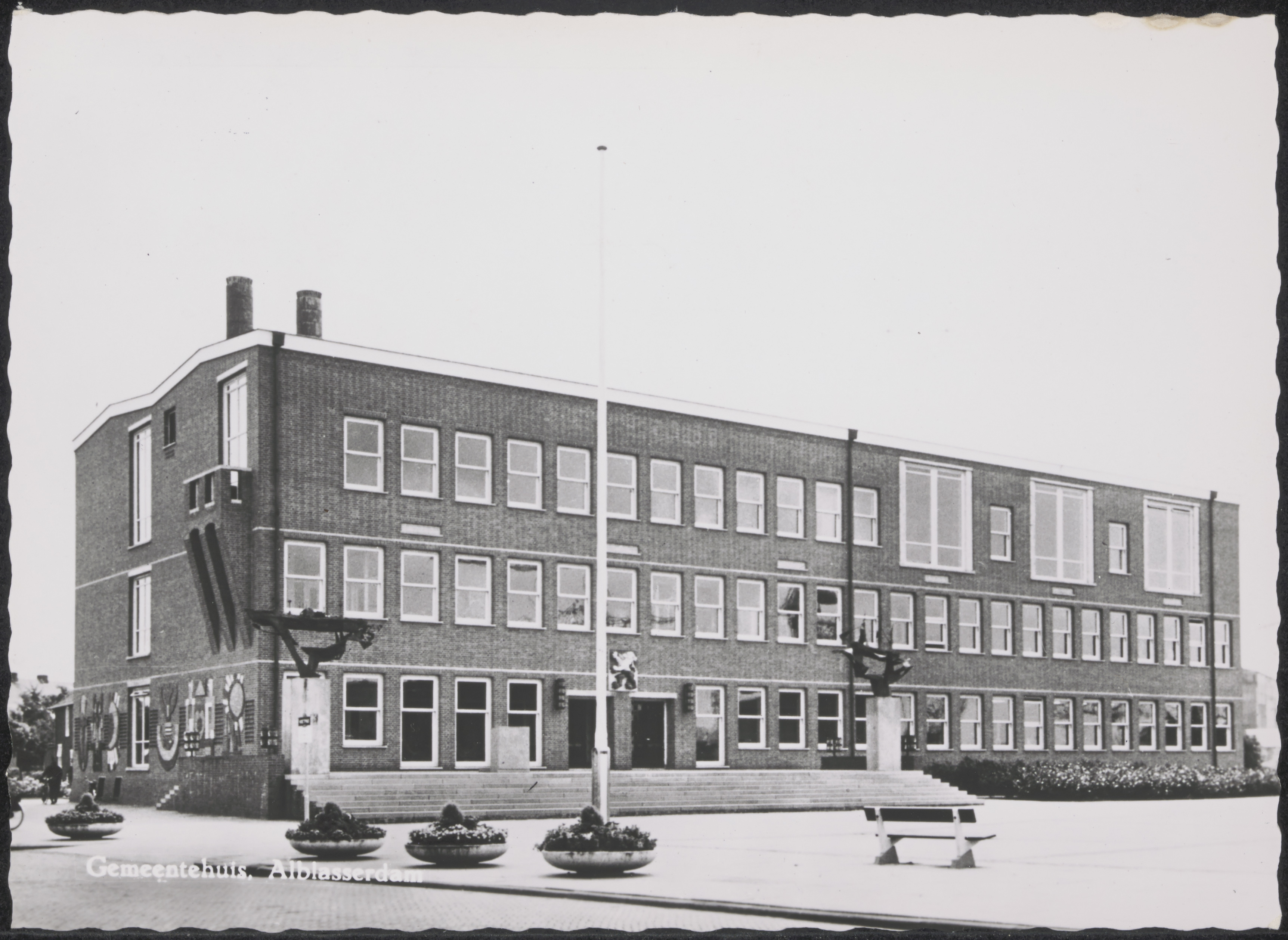 - Gemeentehuis van Alblasserdam op het Raadhuisplein, gezien vanaf het Cortgene.