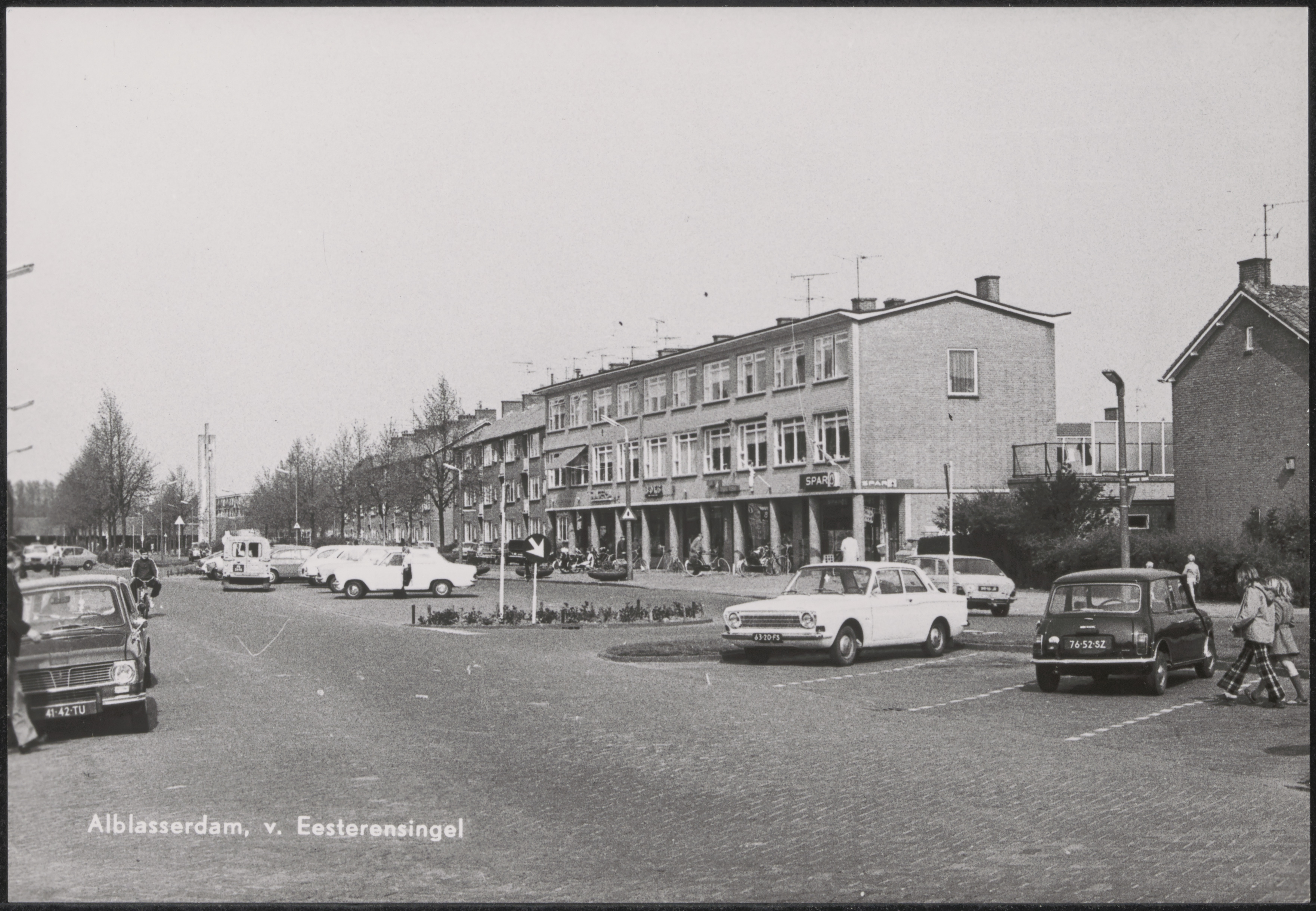 - Winkels aan de Van Eesterensingel gezien vanaf de Groene Zoom in Alblasserdam.