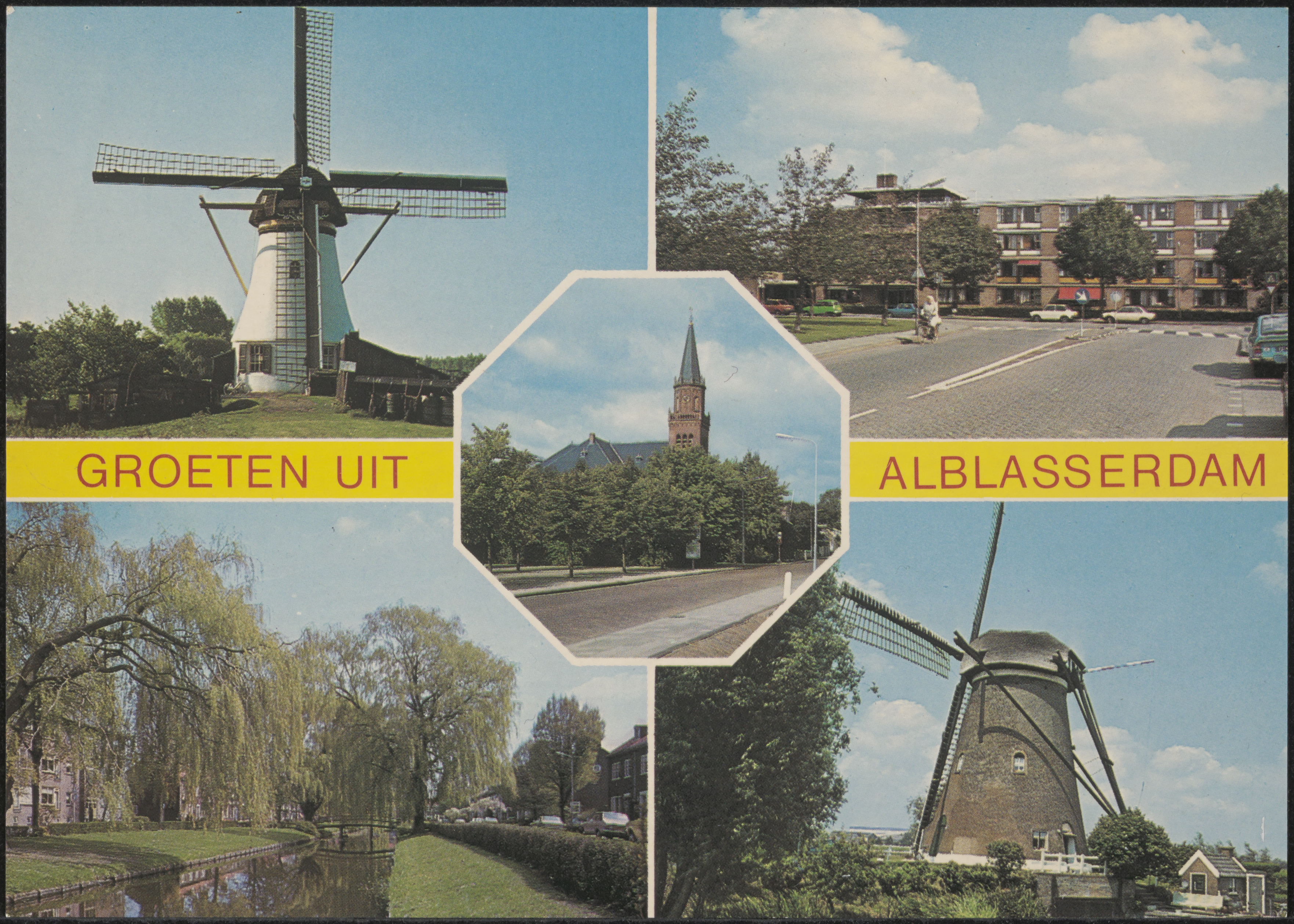 Alblasserdam. Linksboven: Kortlandse molen aan de Kortlandse Kade. Rechtsboven: …