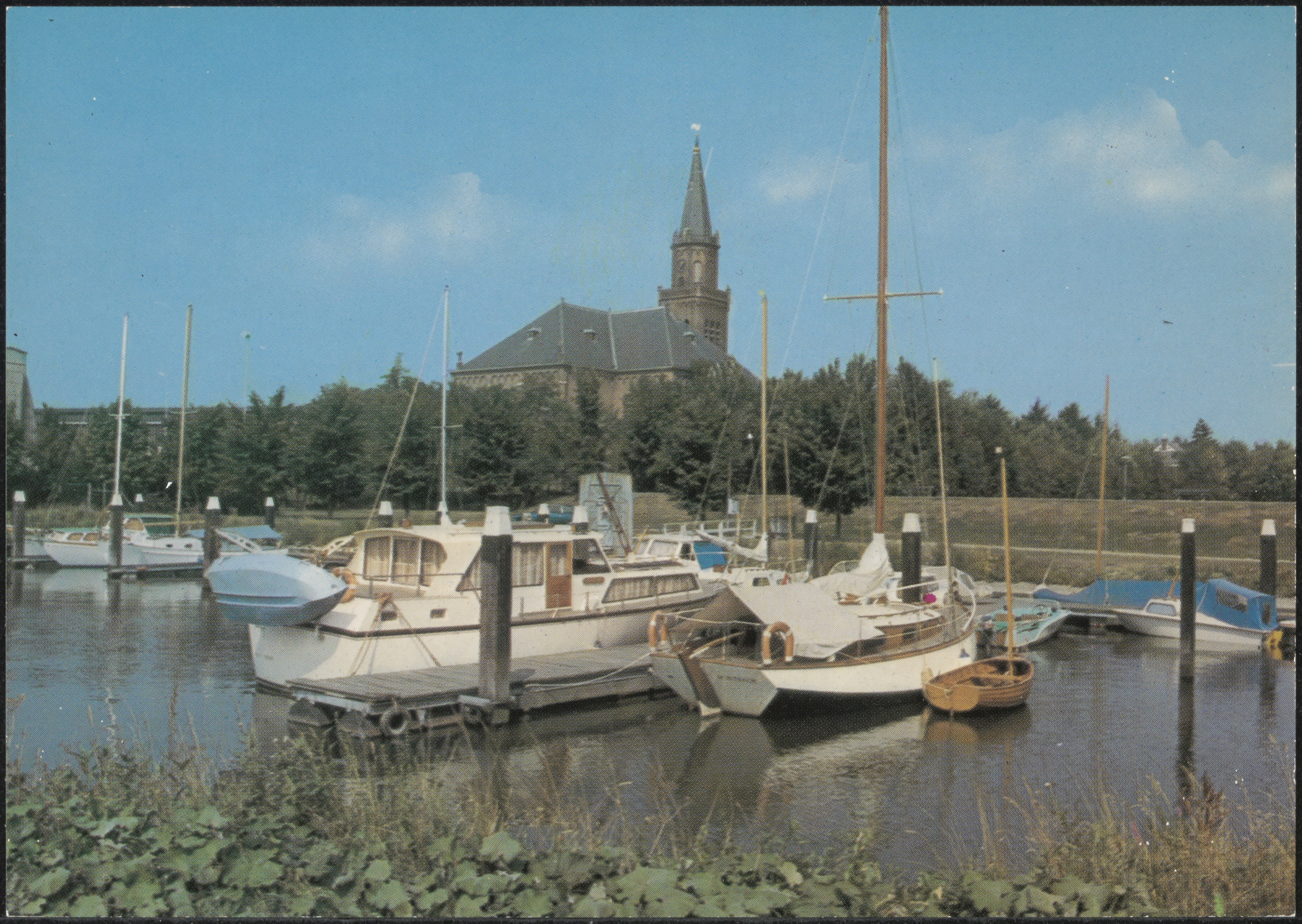 - Buitenjachthaven gezien vanaf het Zuiderstek richting de Grote kerk in Alblasserdam.