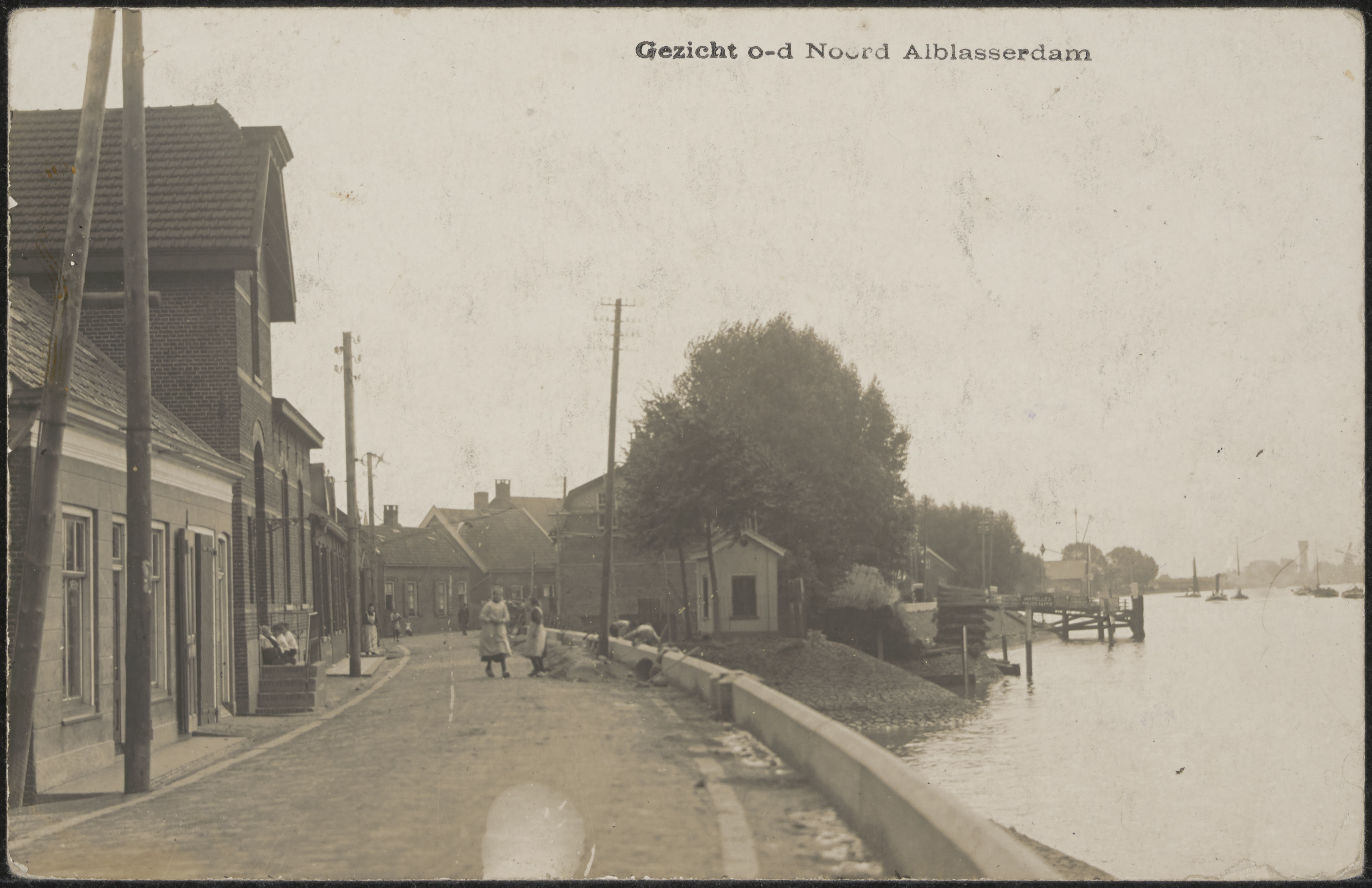 Links het hoge gebouw " Ultile Dulci" aan de Oost Kinderdijk 131. Dit was het kerkgebouw van de Gereformeerde Kerk Vrijgemaakt.