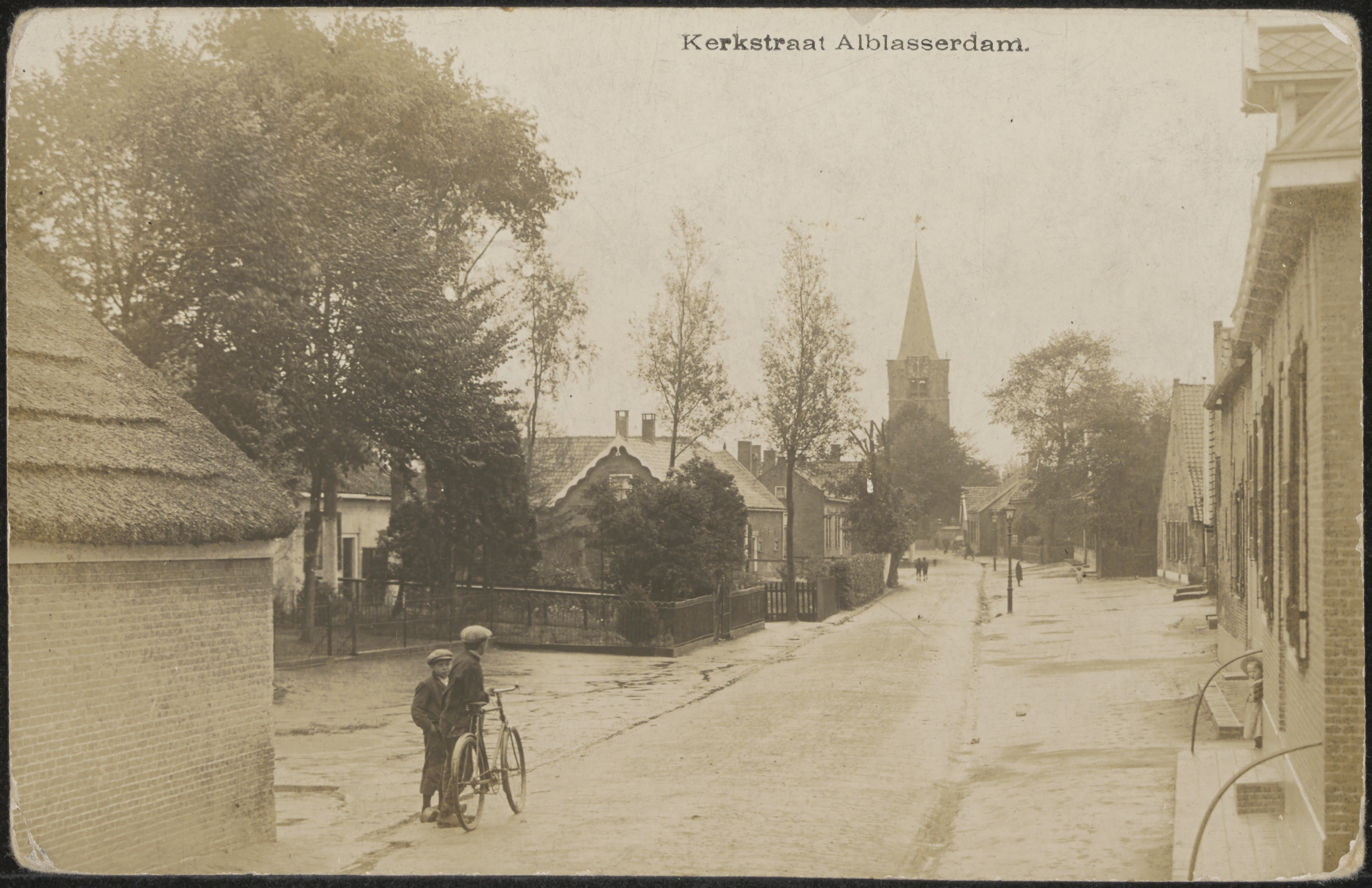 - De Kerkstraat t.h.v. de Waalsmondelaan richting Oude Toren in Alblasserdam.