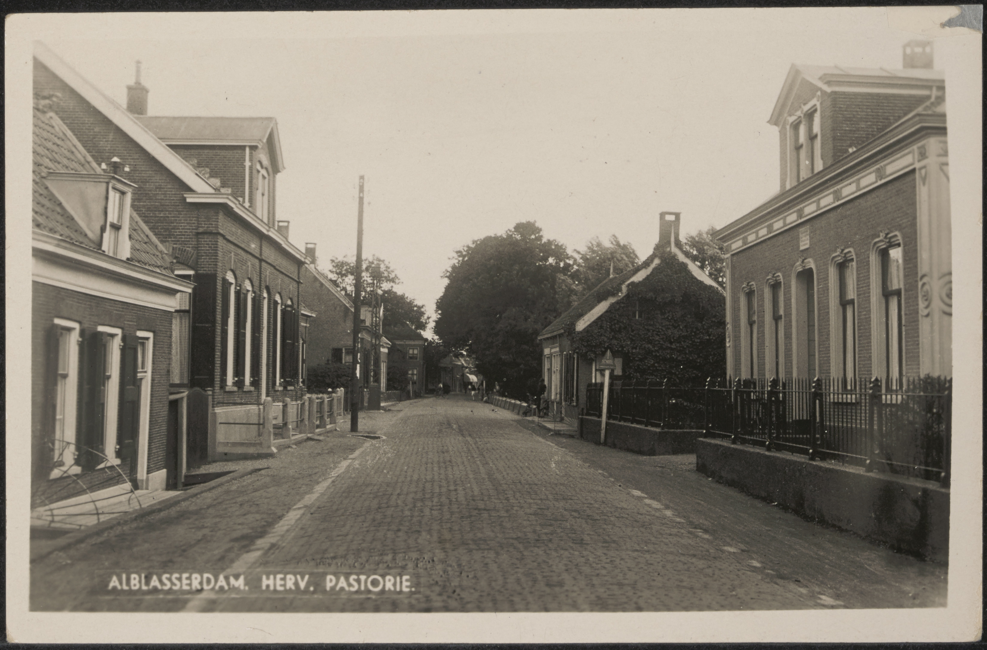 - Rechts de pastorie van de Grote Kerk aan het Cortgene in Alblasserdam.