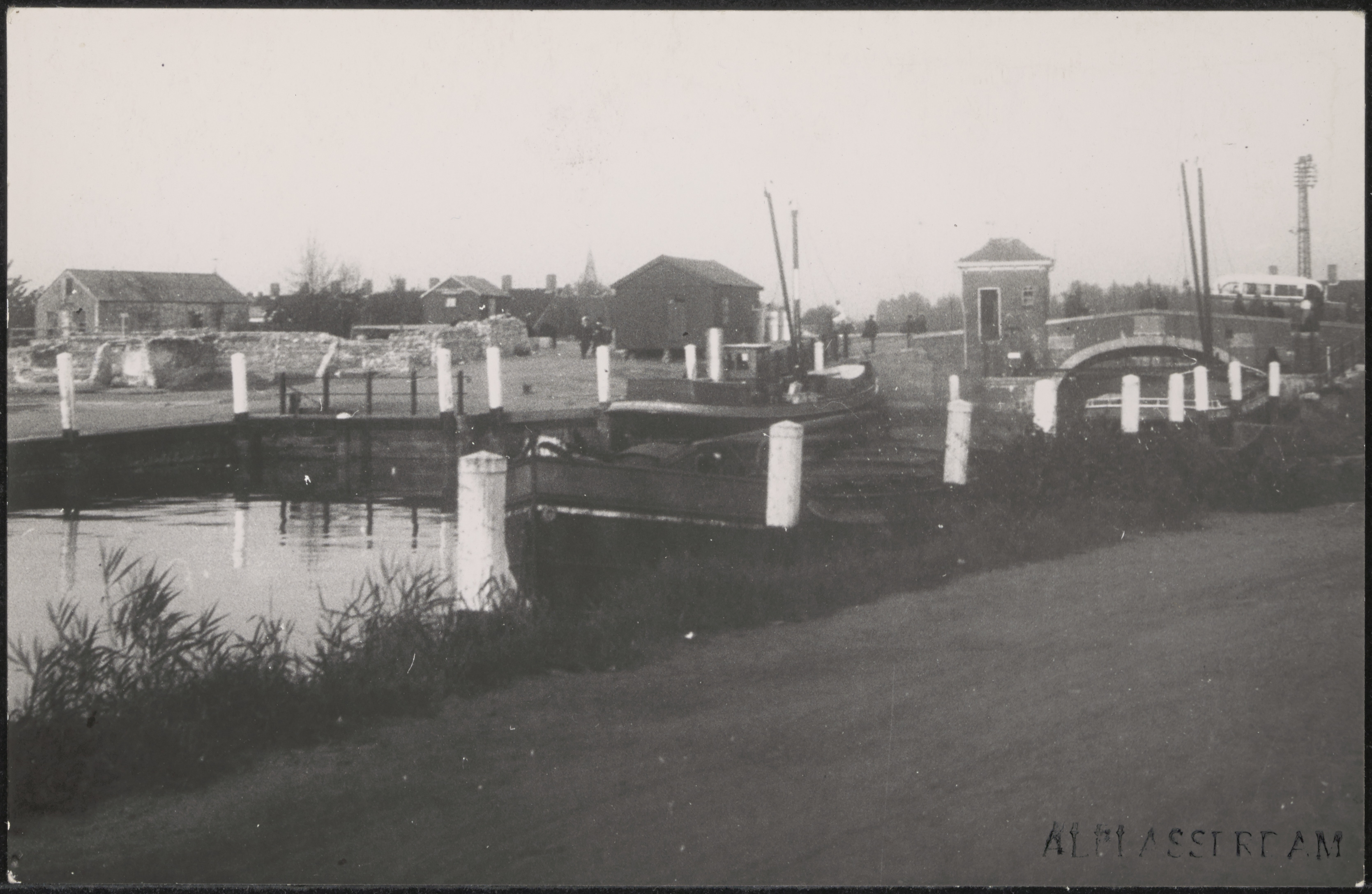 De Dam na het bombardement van 11 mei 1940 op Alblasserdam, gezien vanaf het Zuiderstek.