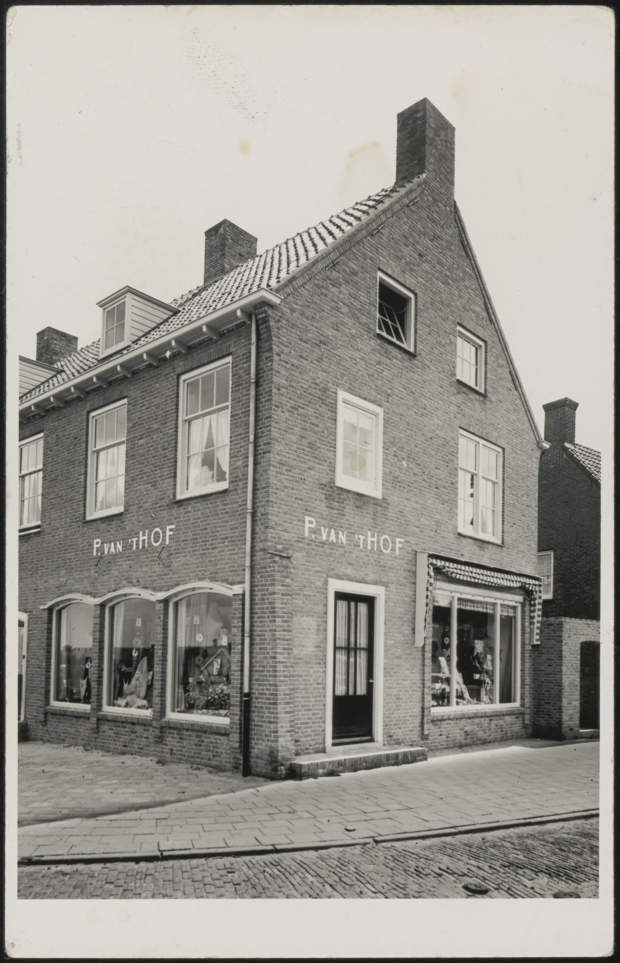 Dus hier op de hoek de winkel van Piet van 't Hof. Daarnaast, links op de foto de bloemenzaak van Dorland.