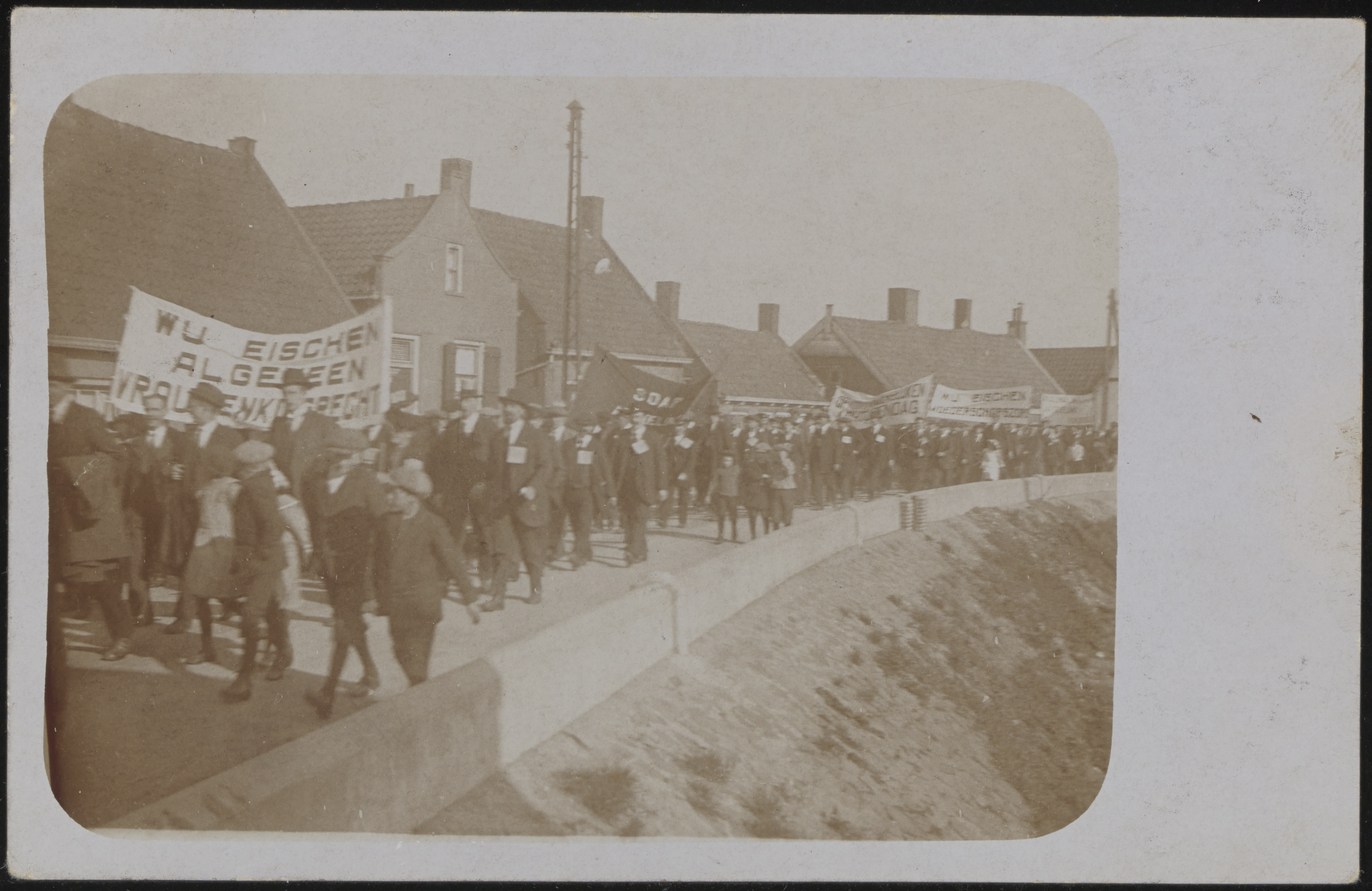 - Protestmars voor het vrouwenkiesrecht op de West Kinderdijk in Alblasserdam.