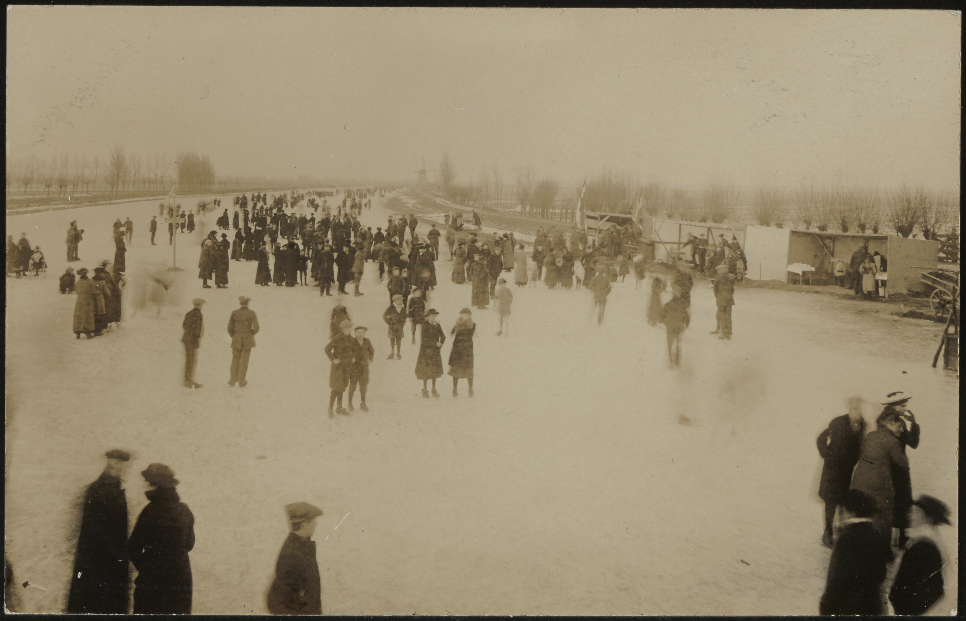 - IJspret op de Nederwaard gezien vanaf de brug bij Kortland in Alblasserdam. Links en rechts de Kortlandsche Kade en de Kortlandse Molen op de achtergrond.