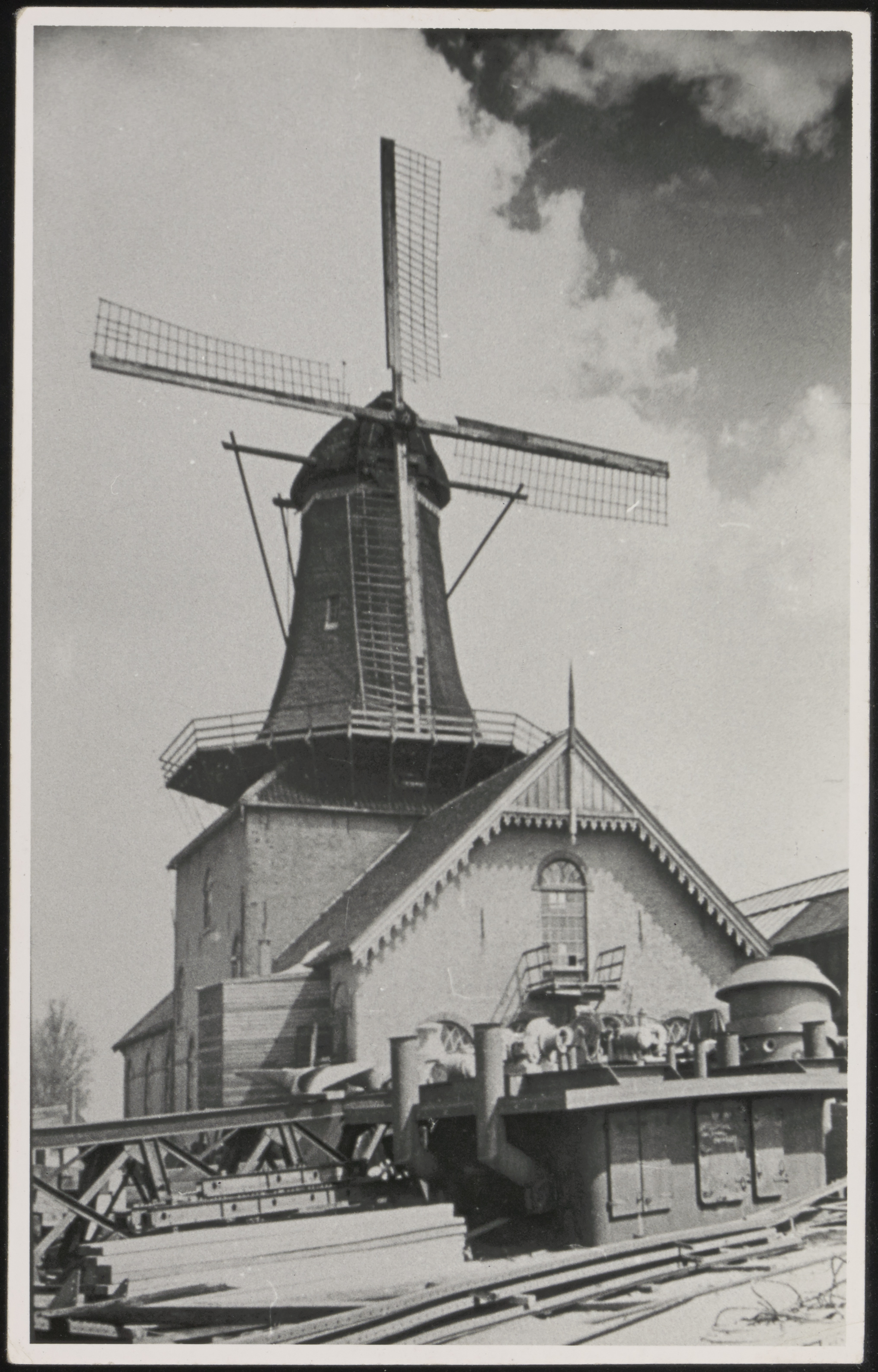 Molen Ons Genoegen op de scheepswerf van Cornelis Smit in Alblasserdam.