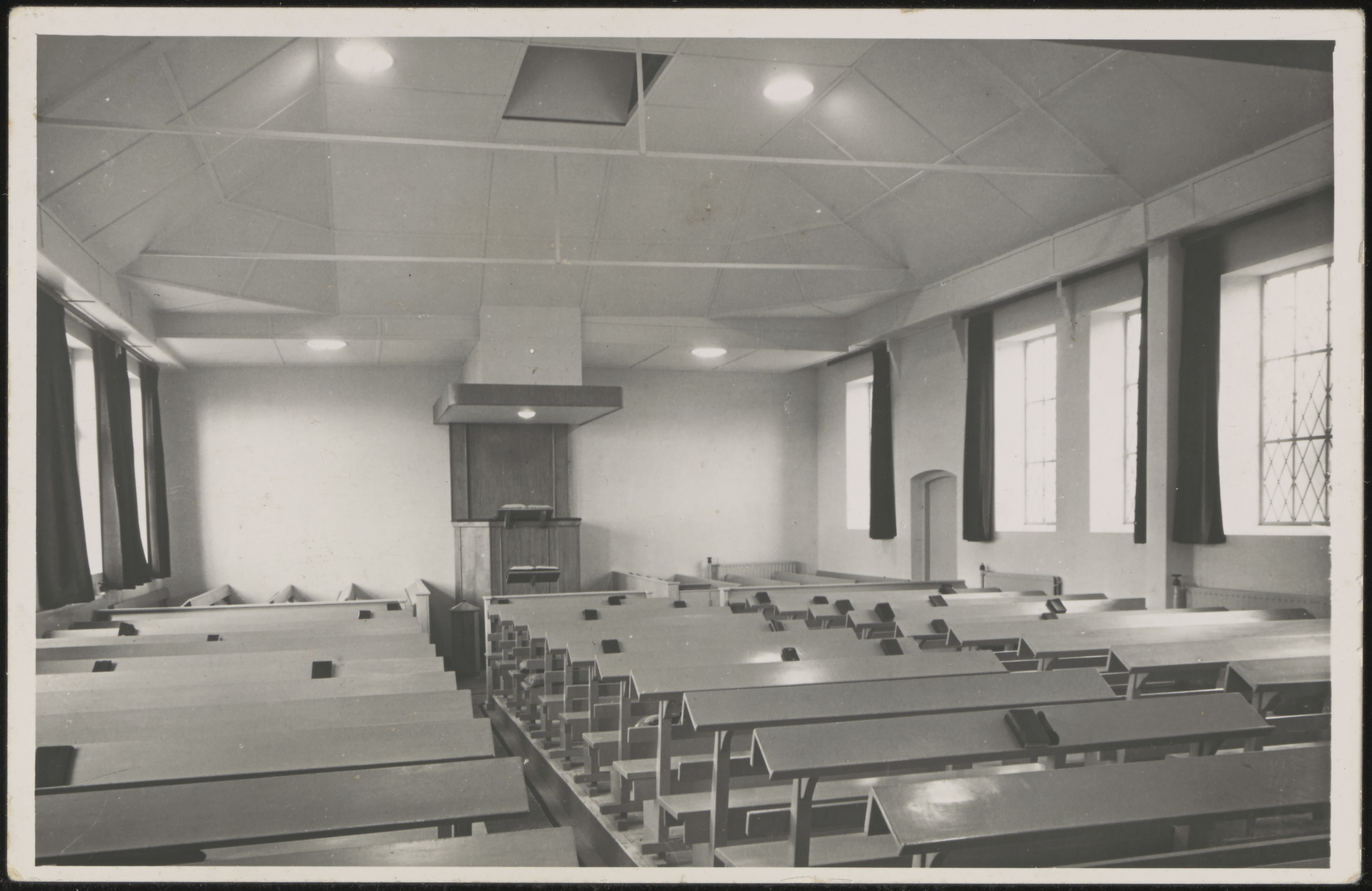 Interieur van de Oud Gereformeerde.Gemeente aan de West Kinderdijk in Alblasserdam.