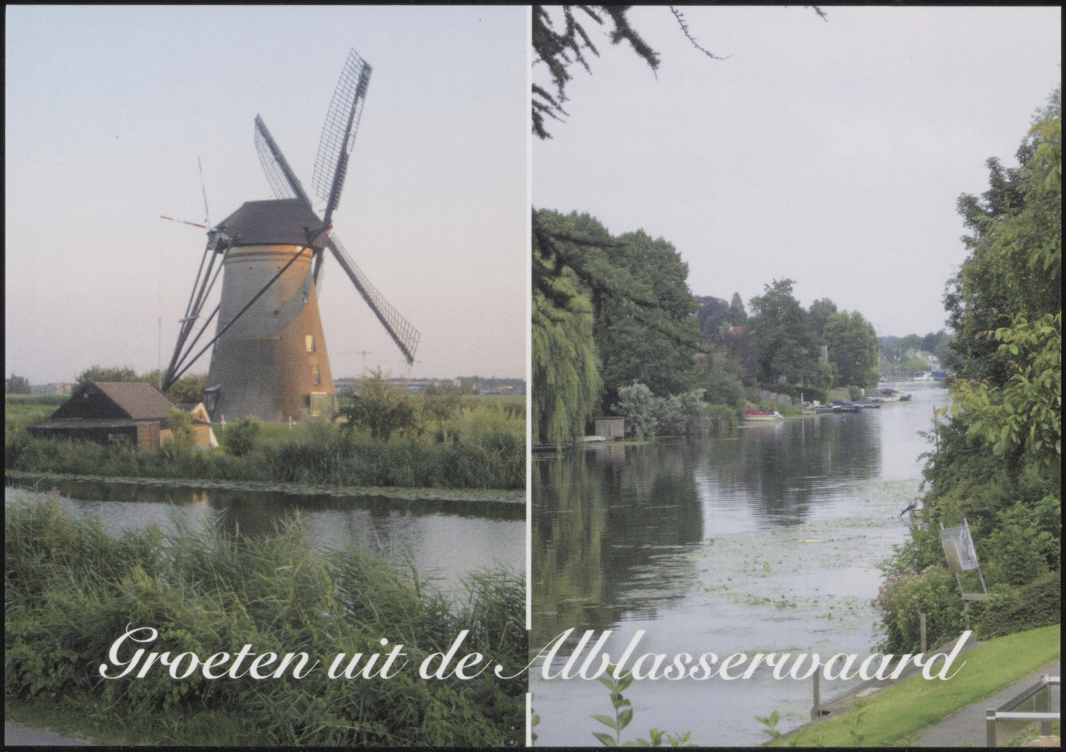 - Links: Molen Nederwaard no.1 aan de Molenkade Nederwaard in Kinderdijk. Rechts: De Alblas de Dam in Alblasserdam, gezien in oostelijke richting.