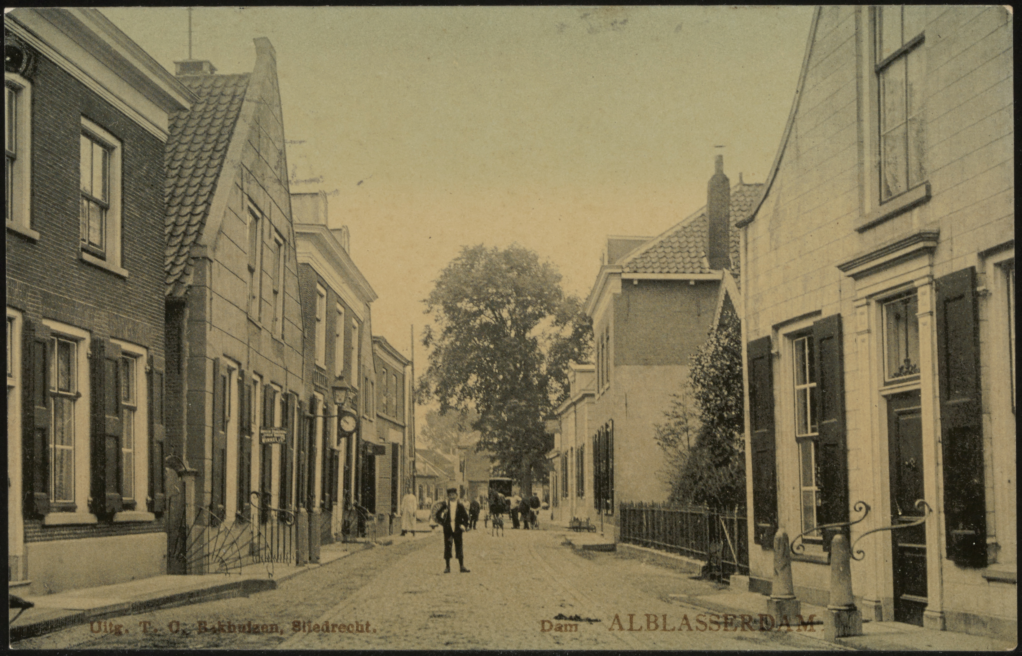 - De Dam in Alblasserdam. Bij de klok is het oude raadhuis.