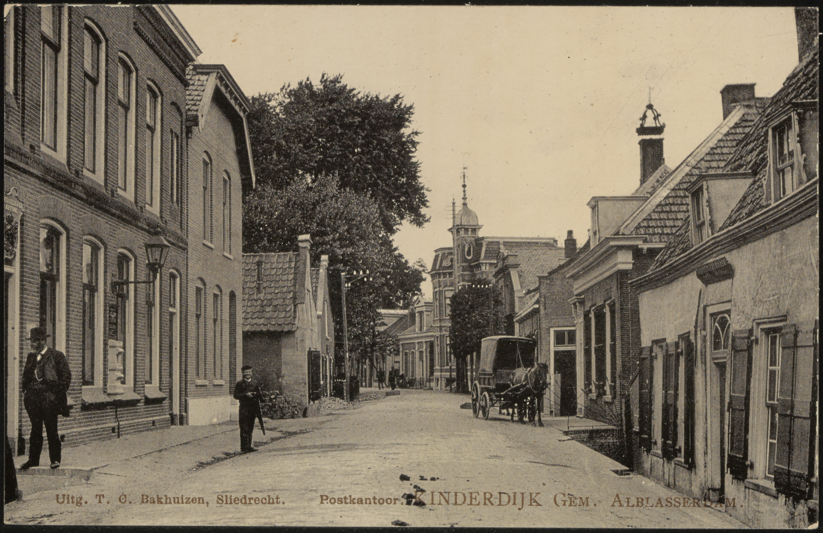 - Links het postkantoor aan het Cortgene in Alblasserdam, gezien richting Kinderdijk.