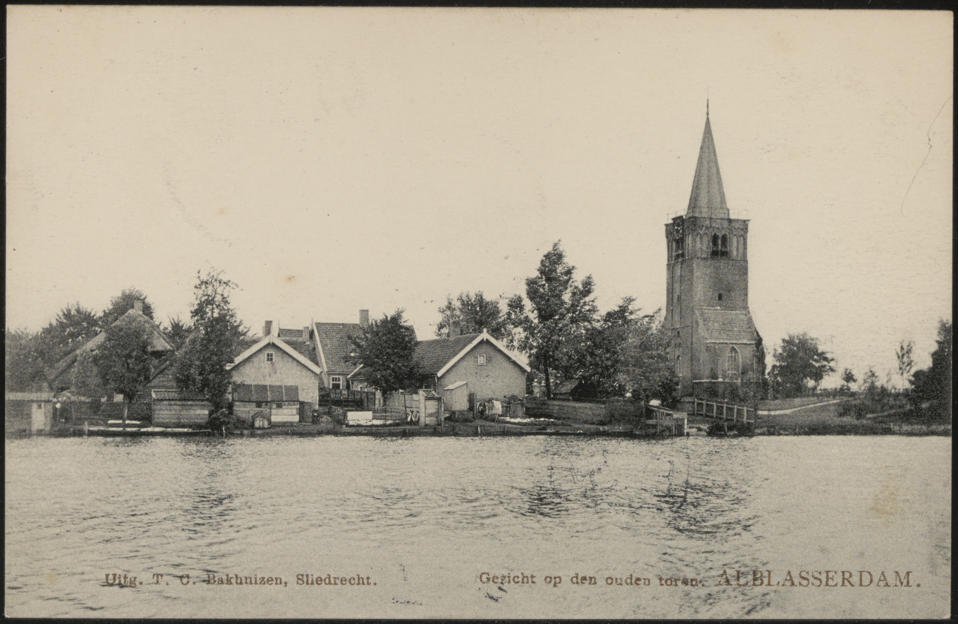 - De Oude Toren aan de Kerkstraat in Alblasserdam, gezien over de Alblas.