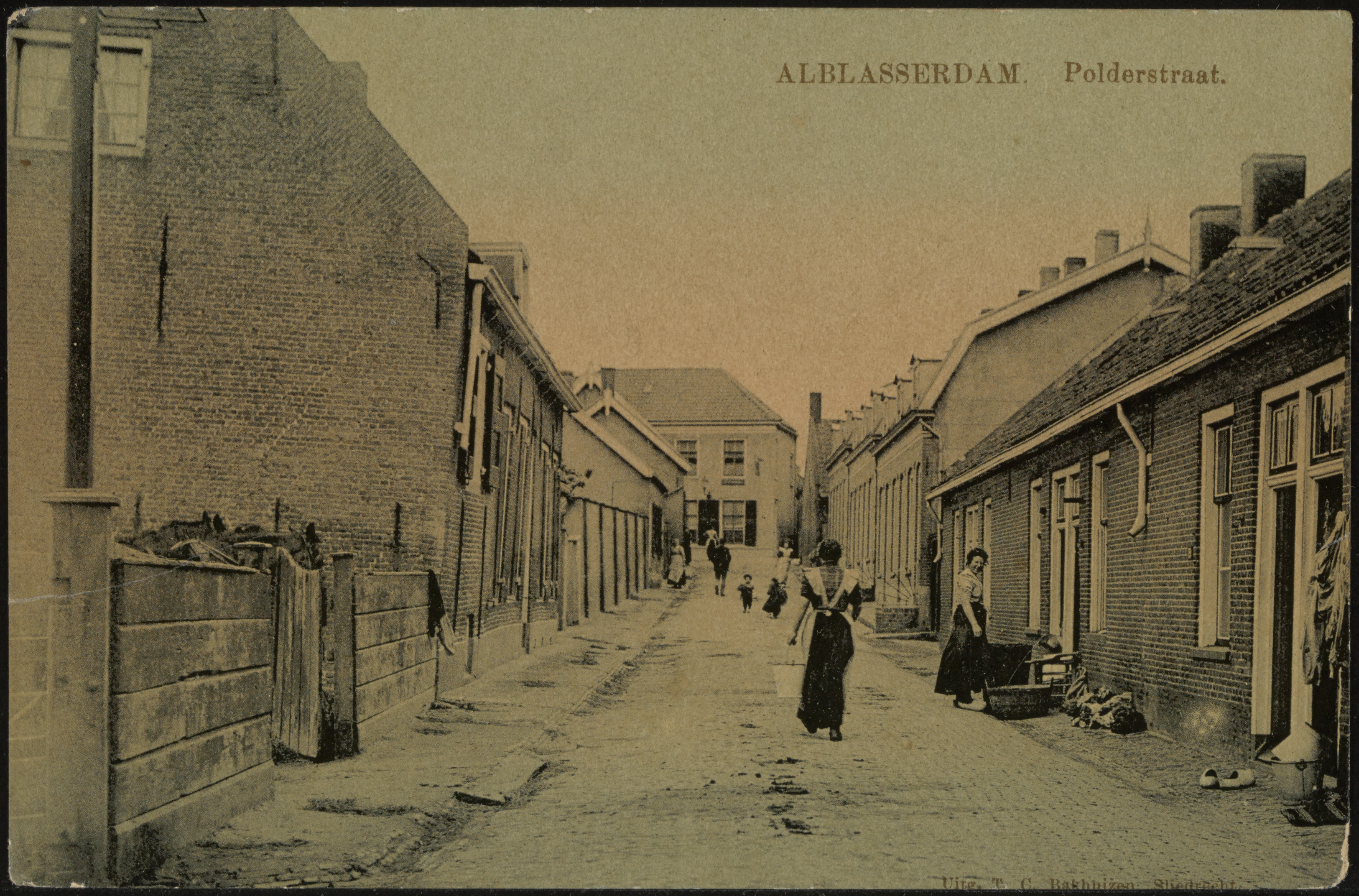 - Polderstraat richting hotel Het wapen van Alblasserdam op de Dam in Alblasserdam.