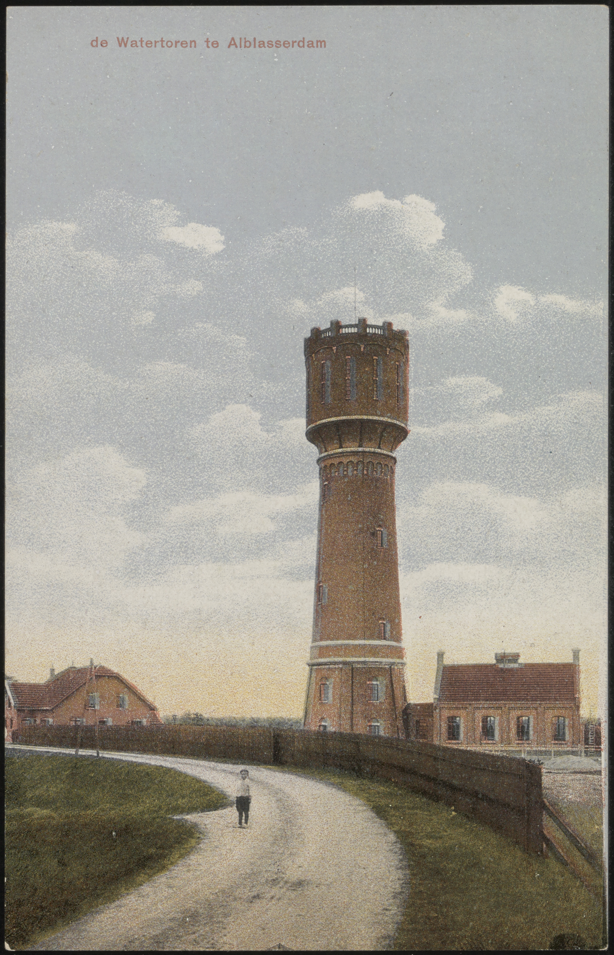 Alblasserdamse watertoren aan het Rapenburg 11-13, gebouwd in 1905 en 1999 afgebroken.
