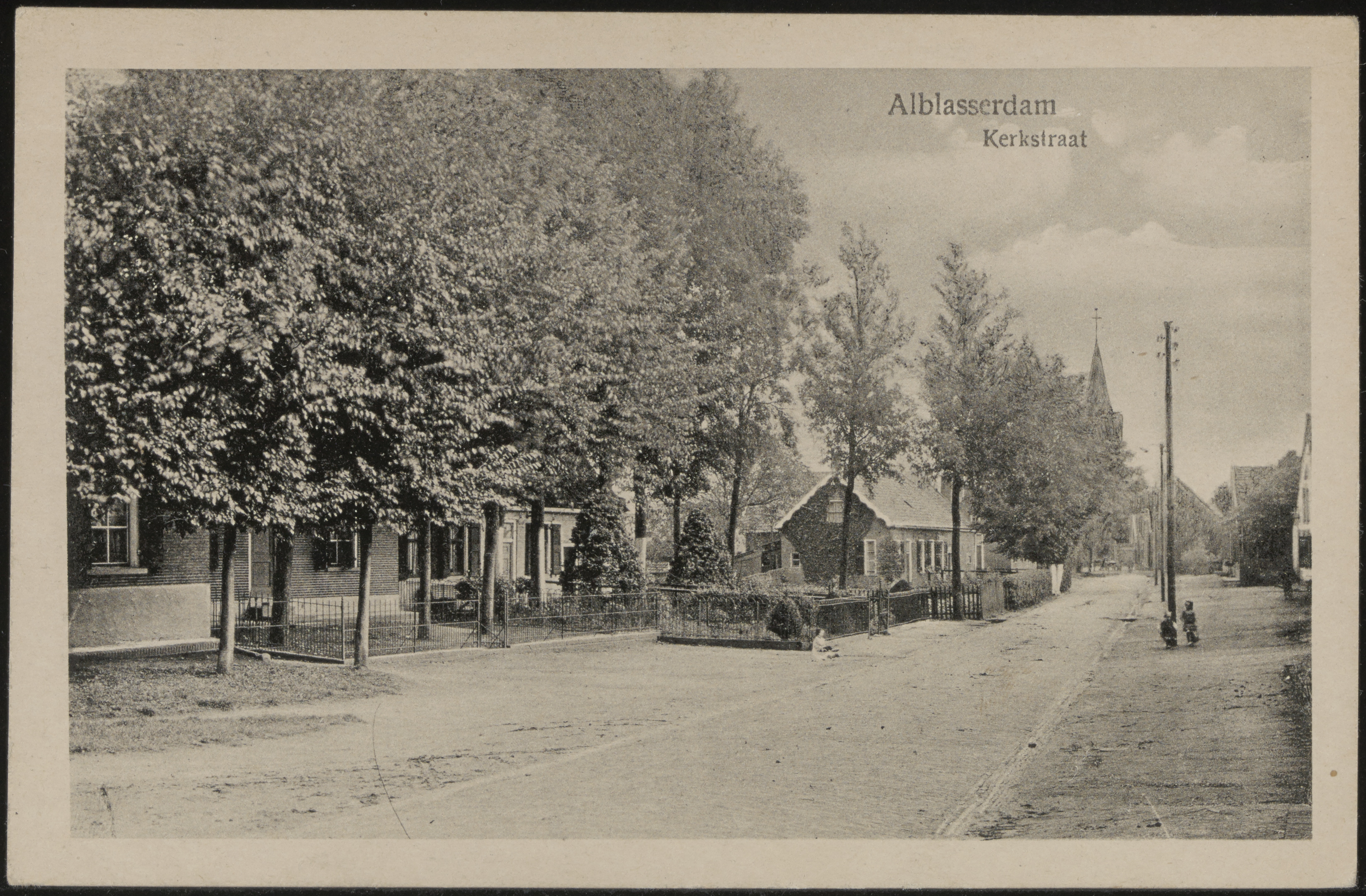 - Kerkstraat richting de Oude Toren in Alblasserdam.