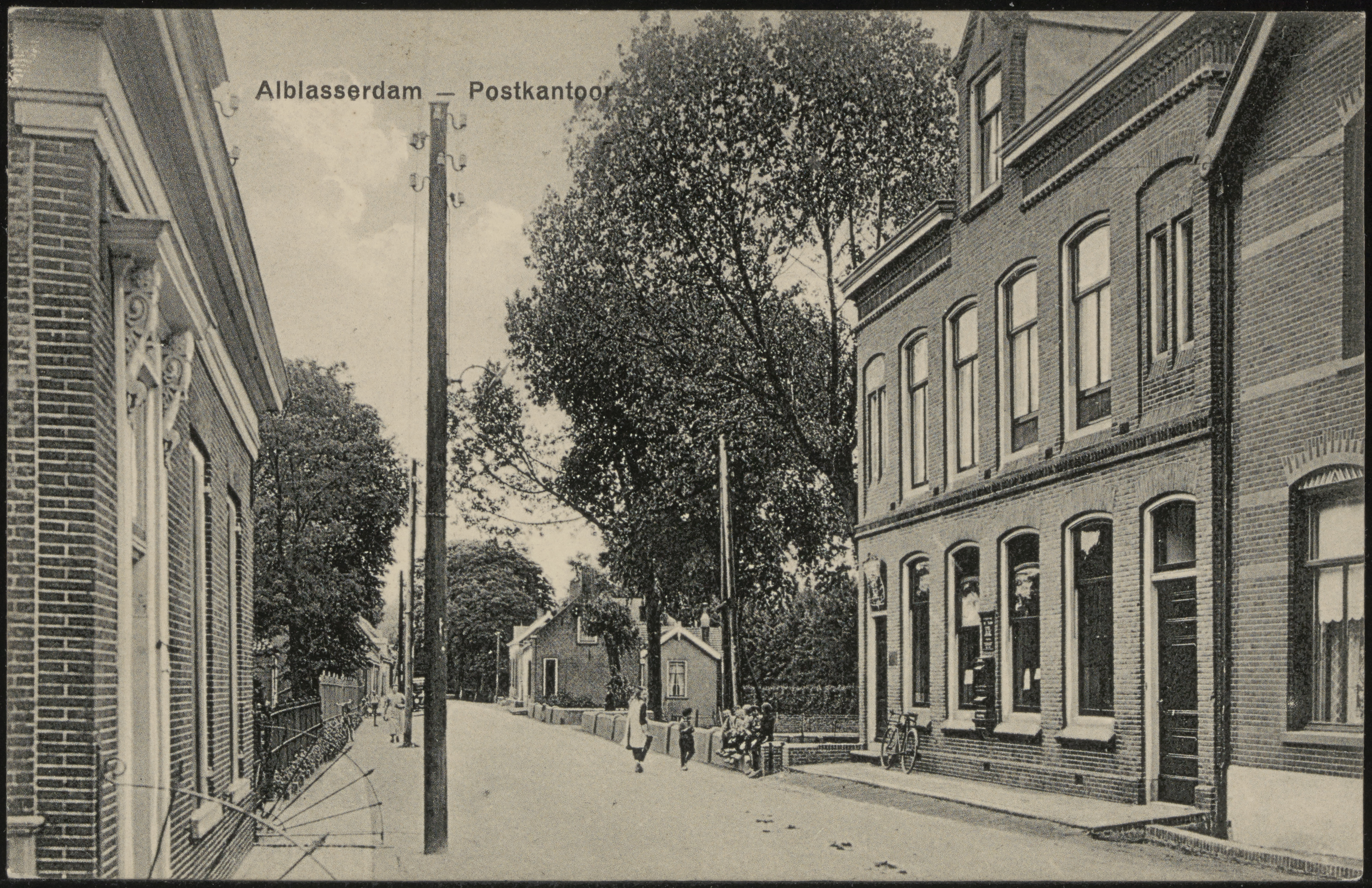 Postkantoor aan het Cortgene 68 (in 1986 gesloopt) gezien in de richting centrum van Alblasserdam.