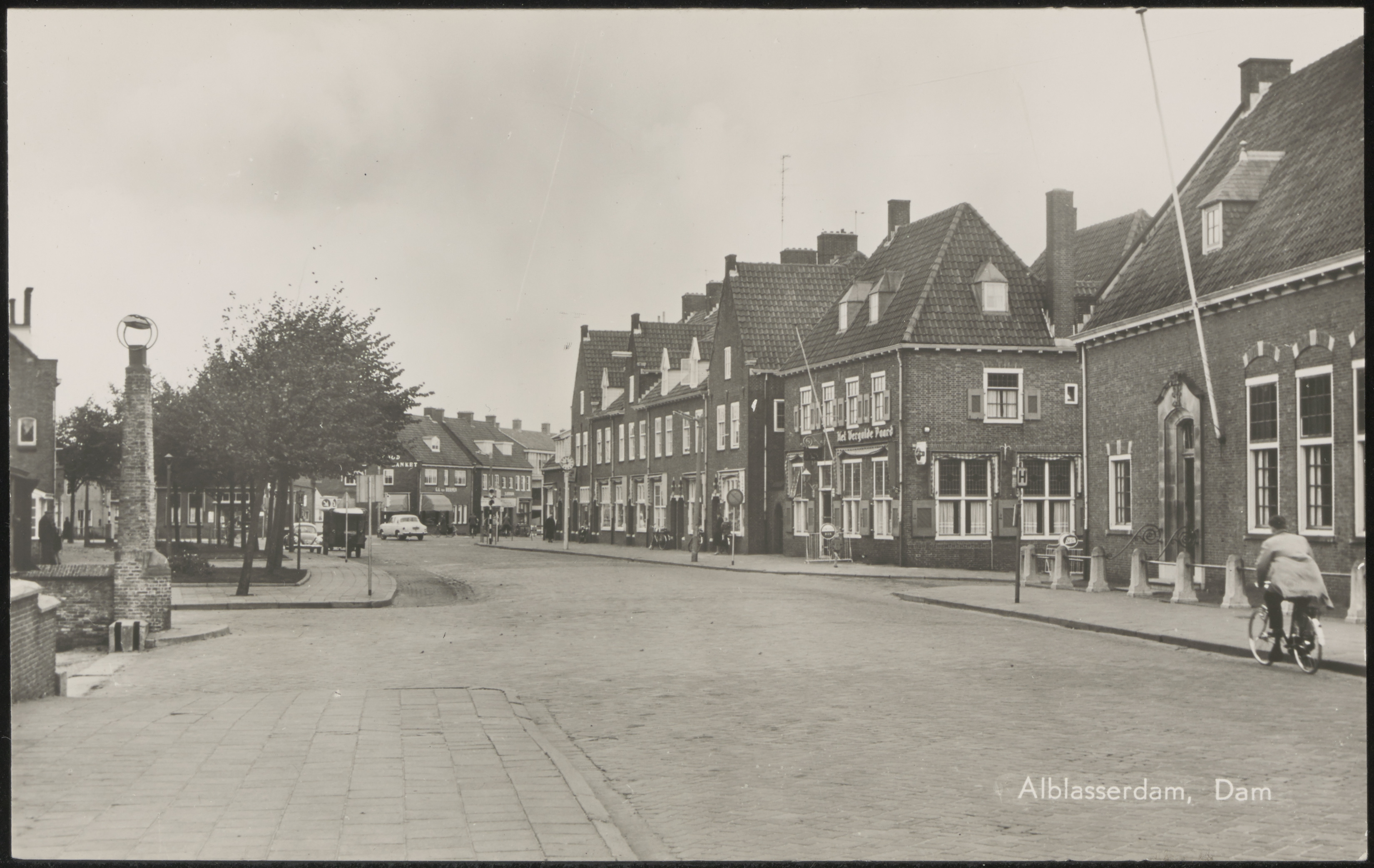 Dam richting Plantageweg met rechts het Waardhuis in Alblasserdam.
