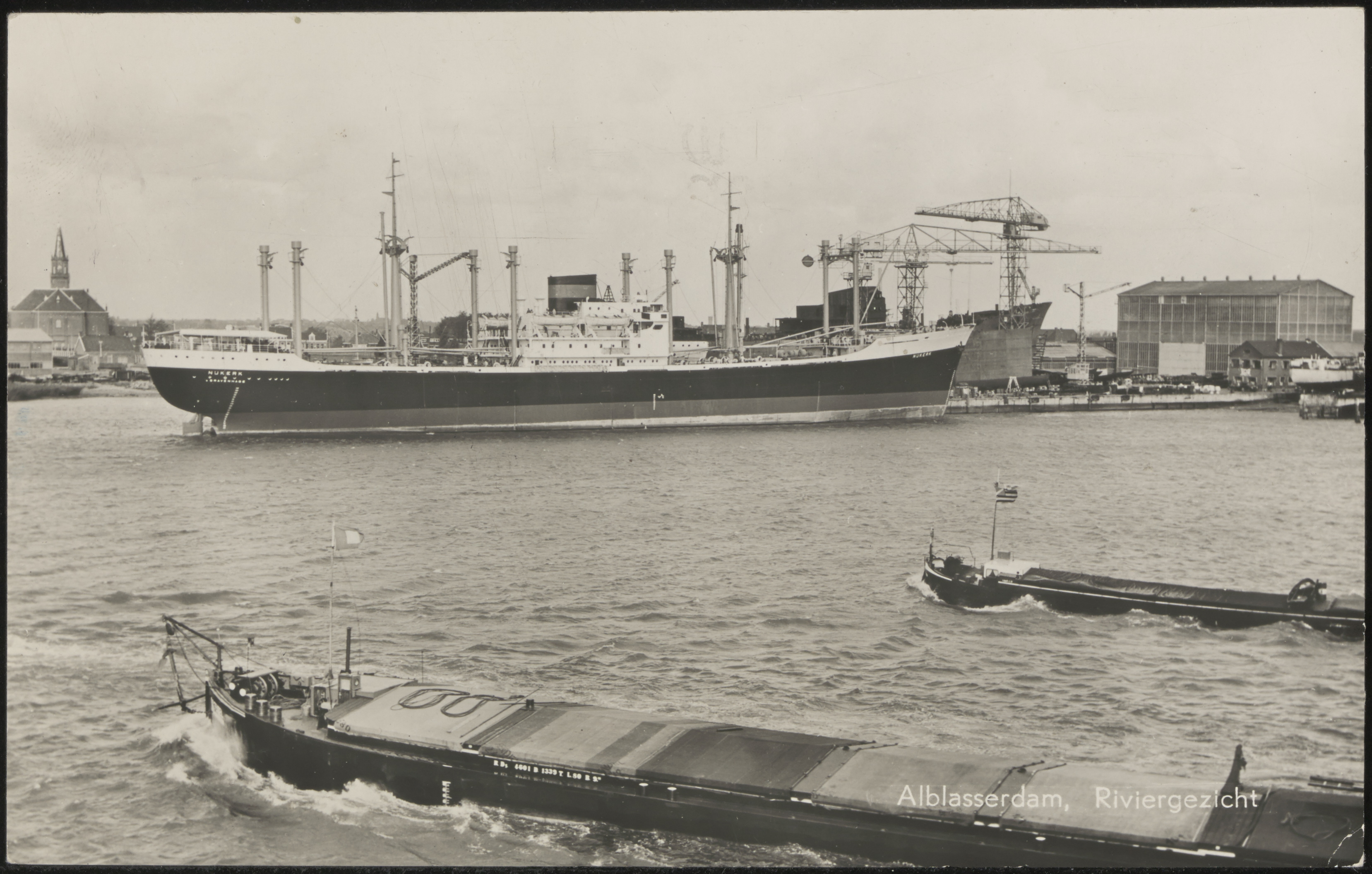 voor de werf het vrachtschip "de Nijkerk" deze is gebouwd bij v der Giessen-de Noord in 1958 voor Nedlloyd Rotterdam.