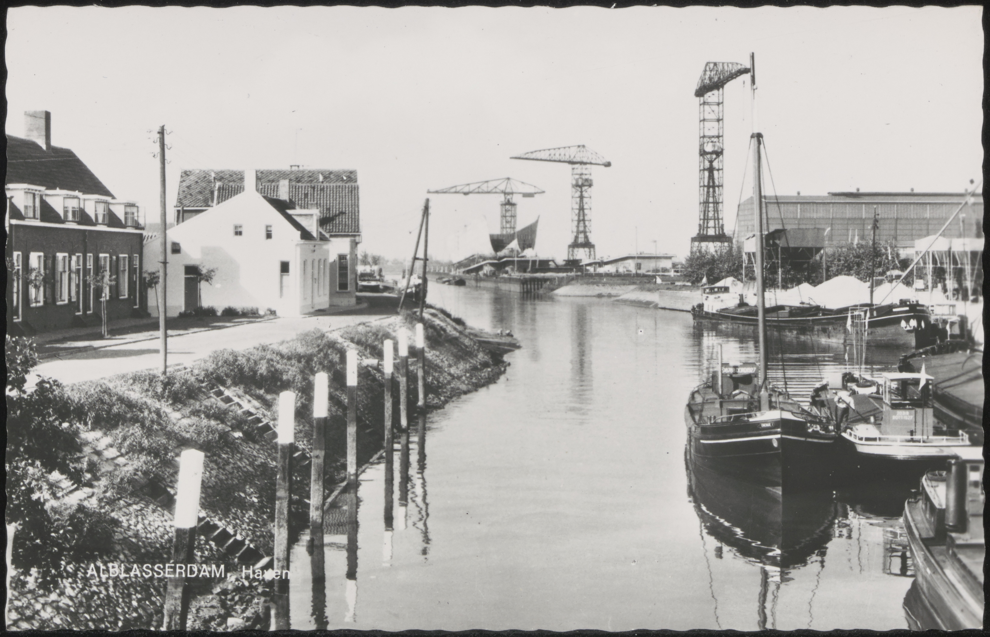 - Links het Zuiderstek langs de Buitenjachthaven in Alblasserdam. Rechts scheepswerf Verolme.