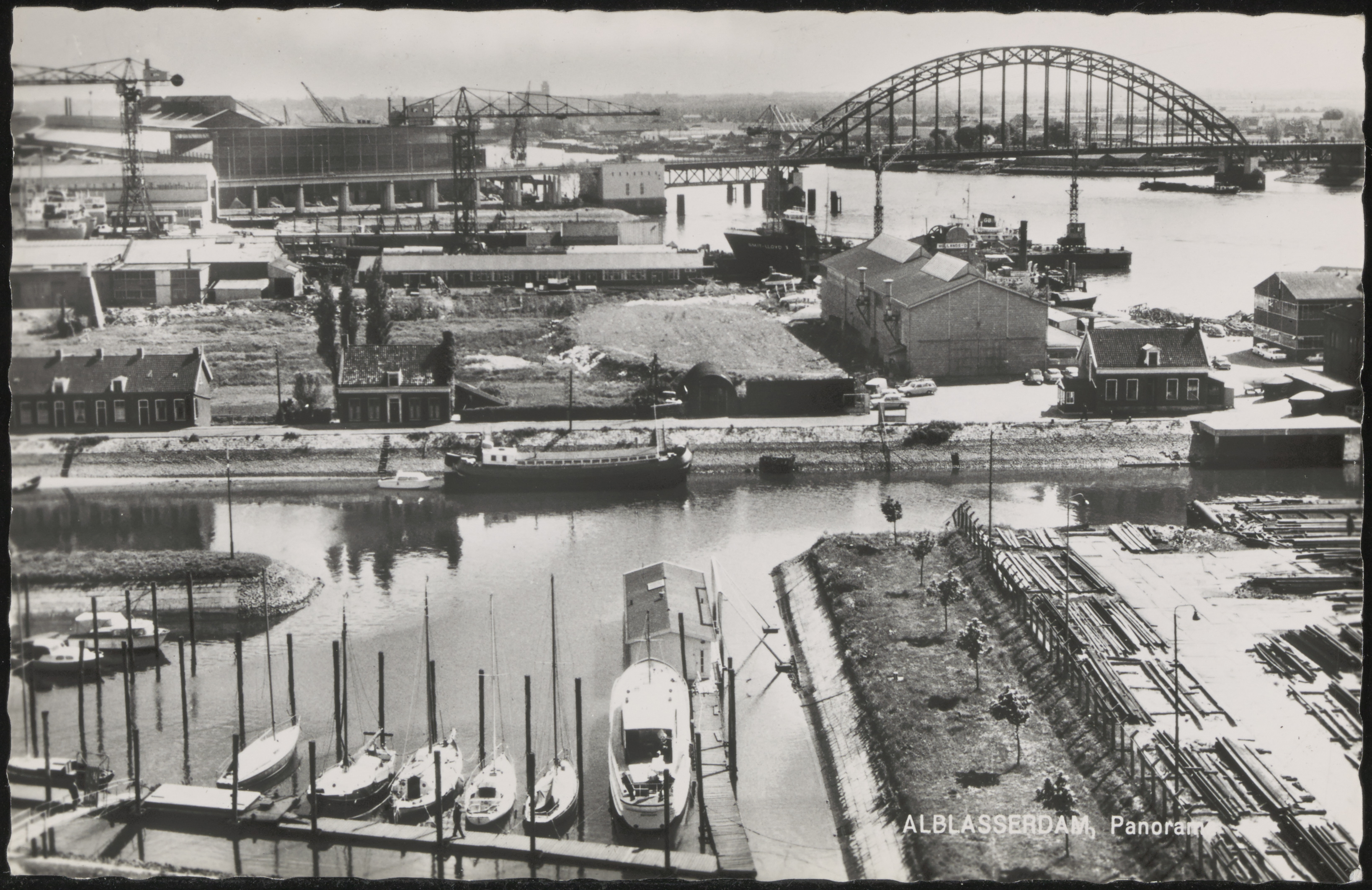 - Buitenjachthaven in Alblasserdam. Het Zuiderstek in het midden, erachter de verzinkerij van Clements, scheepswerf De Noord en de Brug over de Noord.