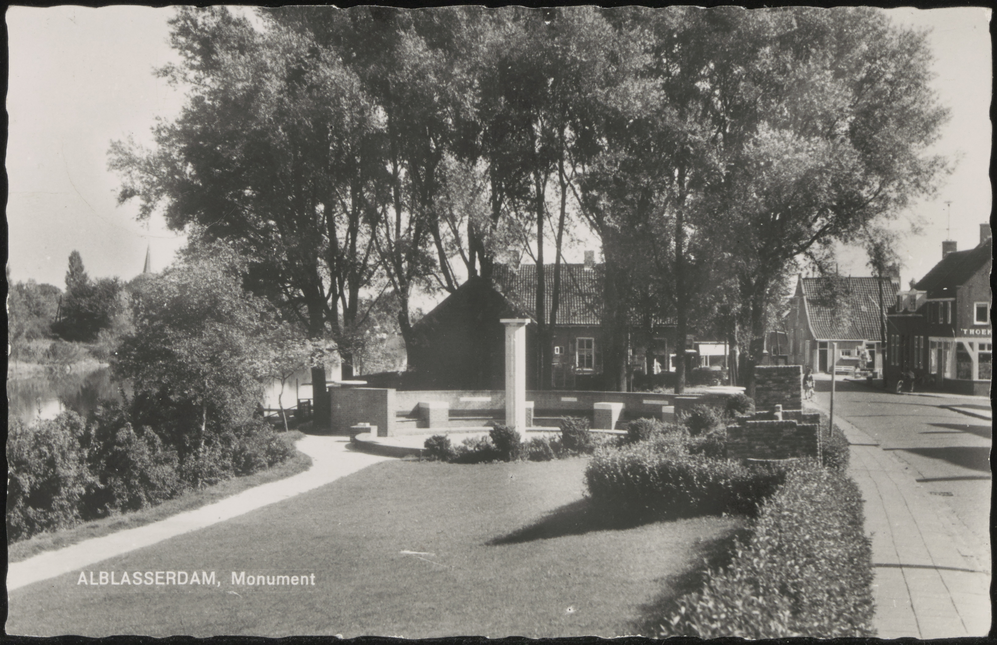 - De door H. Sutterland ontworpen zuil van het oorlogsmonument aan de Polderstraat in Alblasserdam.